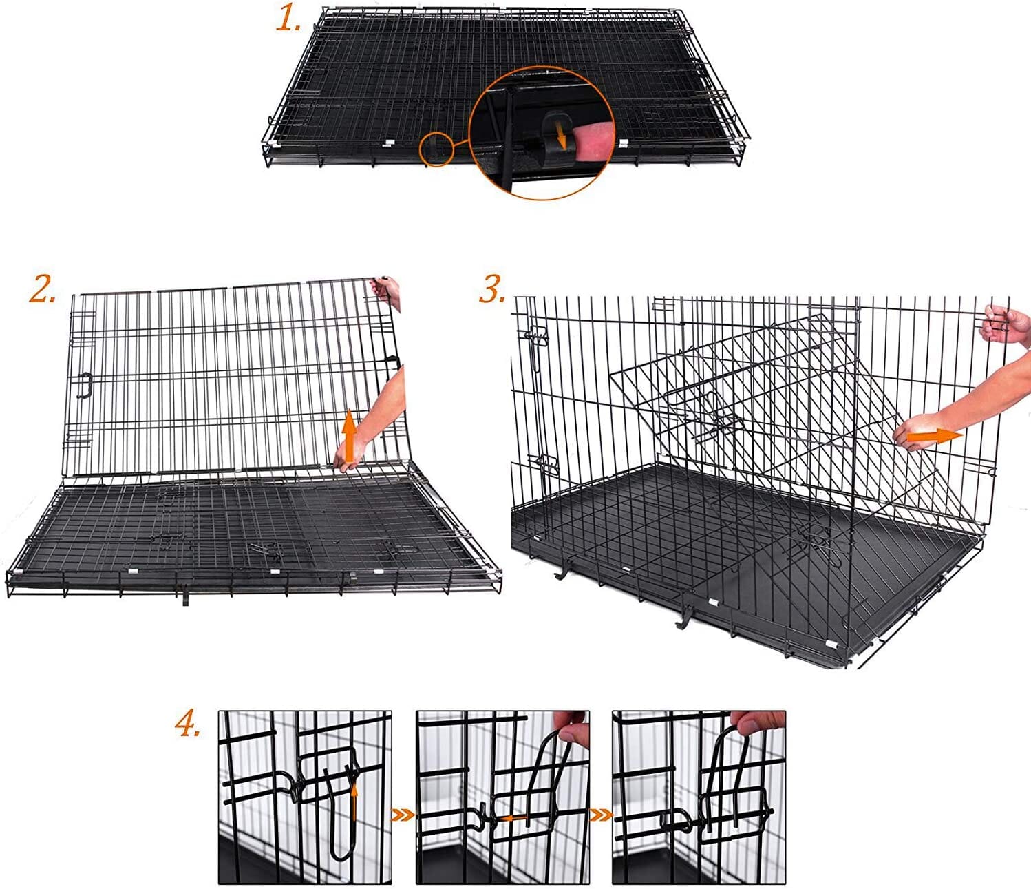 Dobbelte døre, dobbelte låse, dobbelt sikkerhed: Med to døre er det nemt at komme ind og ud. Desuden hjælper de dobbelt-L-formede låse med at forhindre din hvalp i at komme ud på egen hånd.