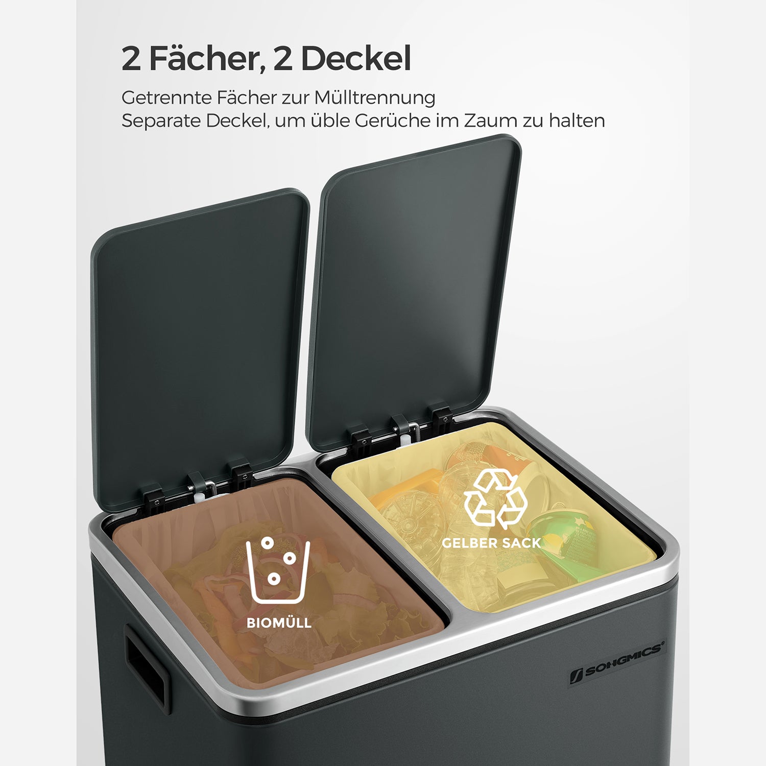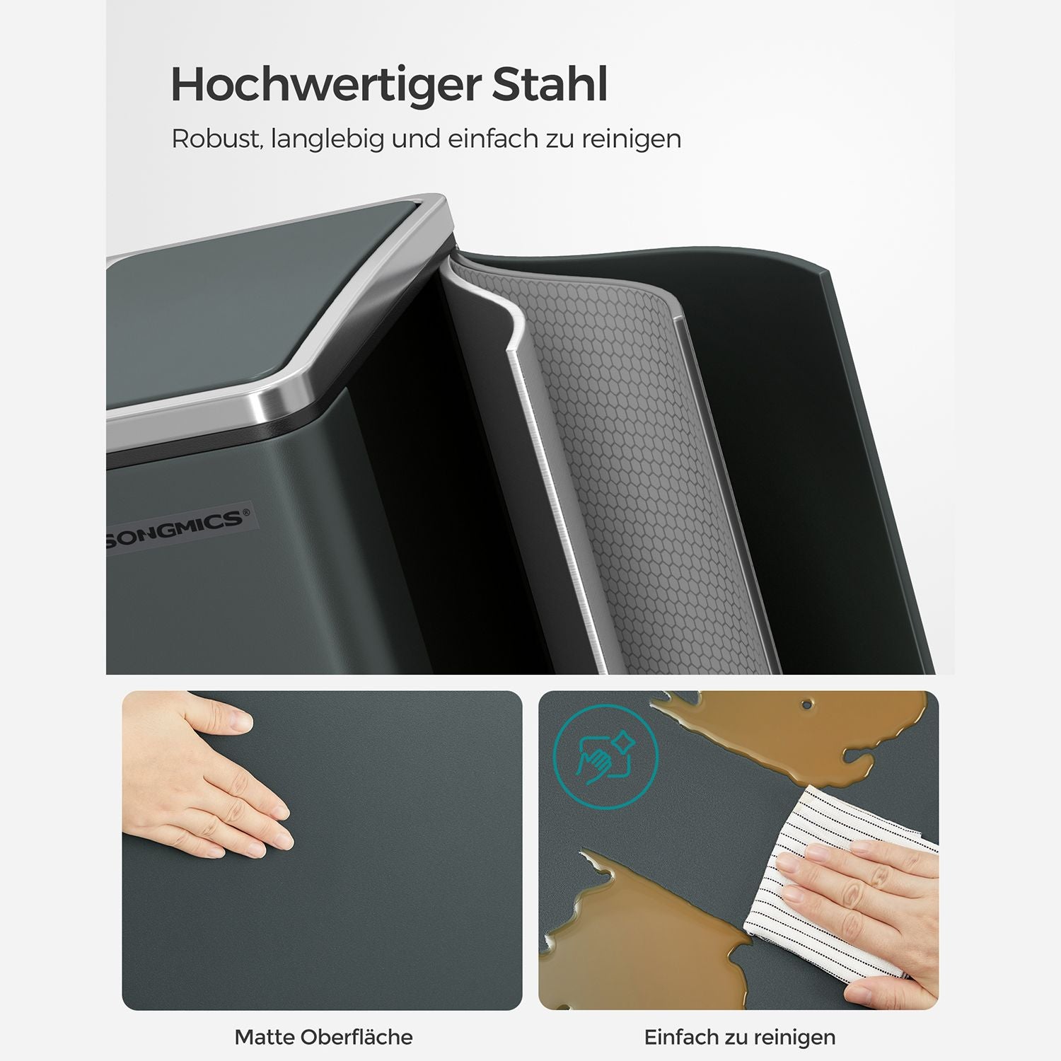 Med denne affaldsspand får du en moderne og funktionel løsning til dit køkken. De to 15L rum gør affaldssortering enkel, mens det elegante design i antracitgrå tilføjer et stilfuldt touch til dit hjem. Den blide lukning, de aftagelige inderspande, og den nemme pedalbetjening gør denne affaldsspand til den perfekte kombination af æstetik og funktionalitet.