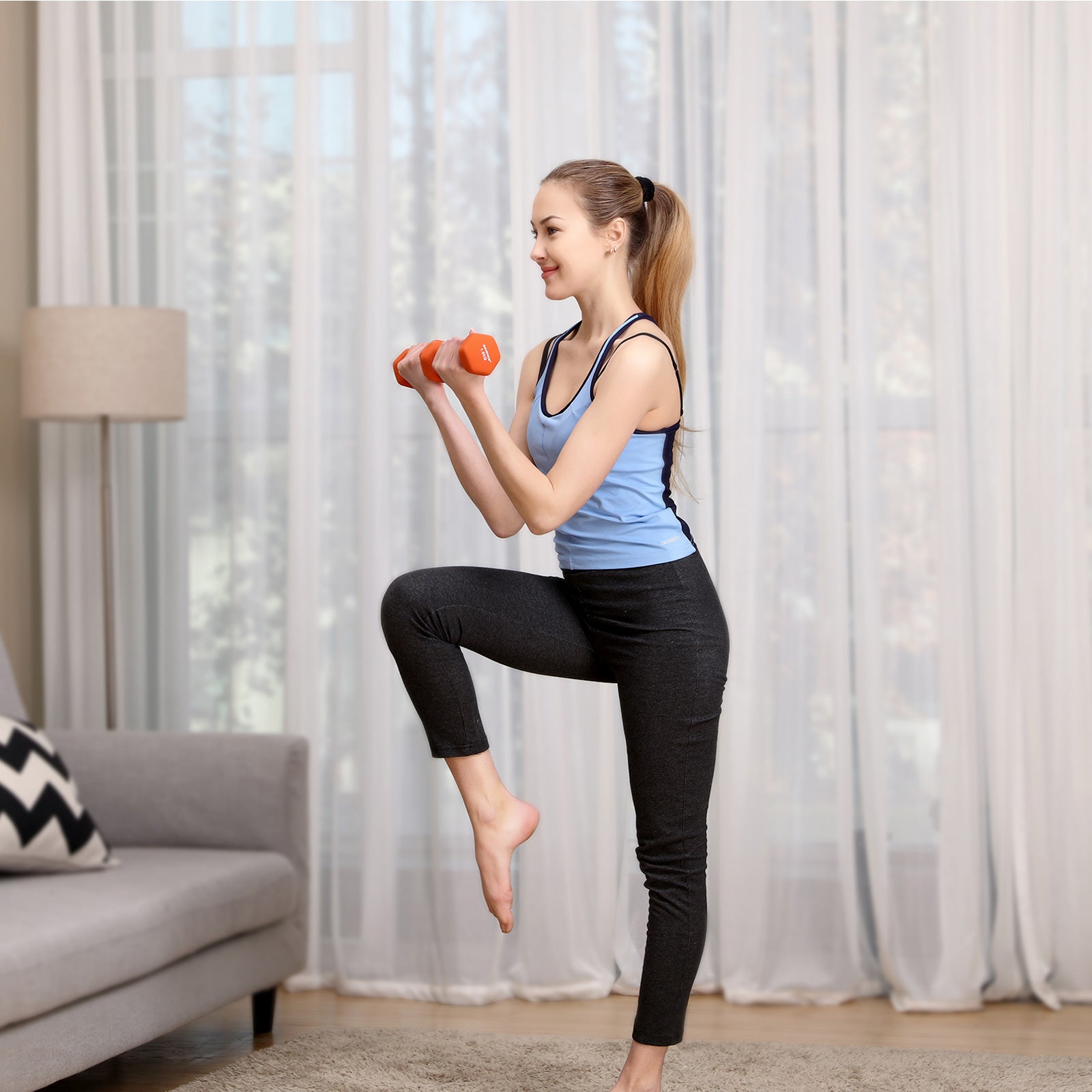 Håndvægtenes sekskantede form forhindrer dem i at rulle, hvilket sikrer stabilitet under træning. Den lyse orange farve løfter humøret og giver ekstra motivation til at nå dine fitnessmål.