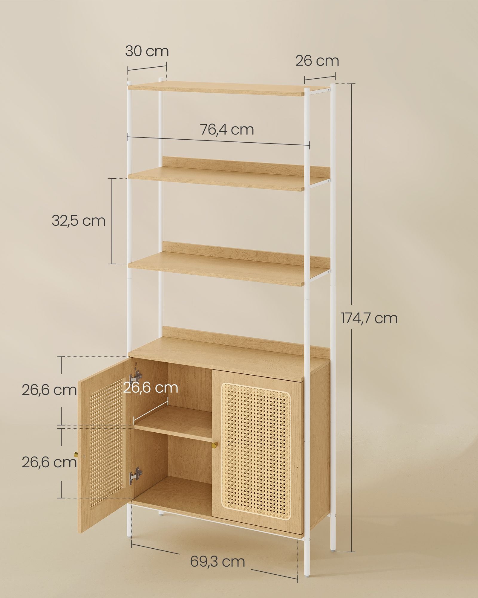 - Produktmål: 30 x 76.4 x 174.7 cm (D x B x H)