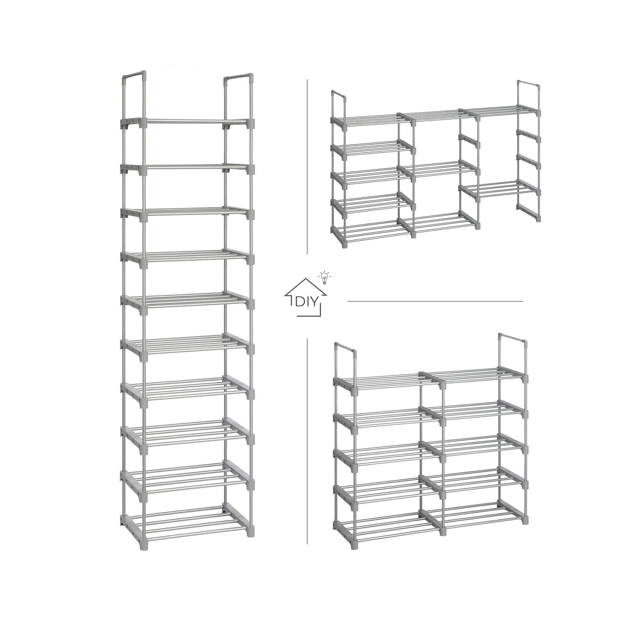 Rummelig og alligevel pladsbesparende - Denne 10-etagers skohylde passer til op til 20 par sko i en slank figur, perfekt til små rum! Fjern hylder, hvis du vil opbevare høje støvler eller opbevaringskasser.