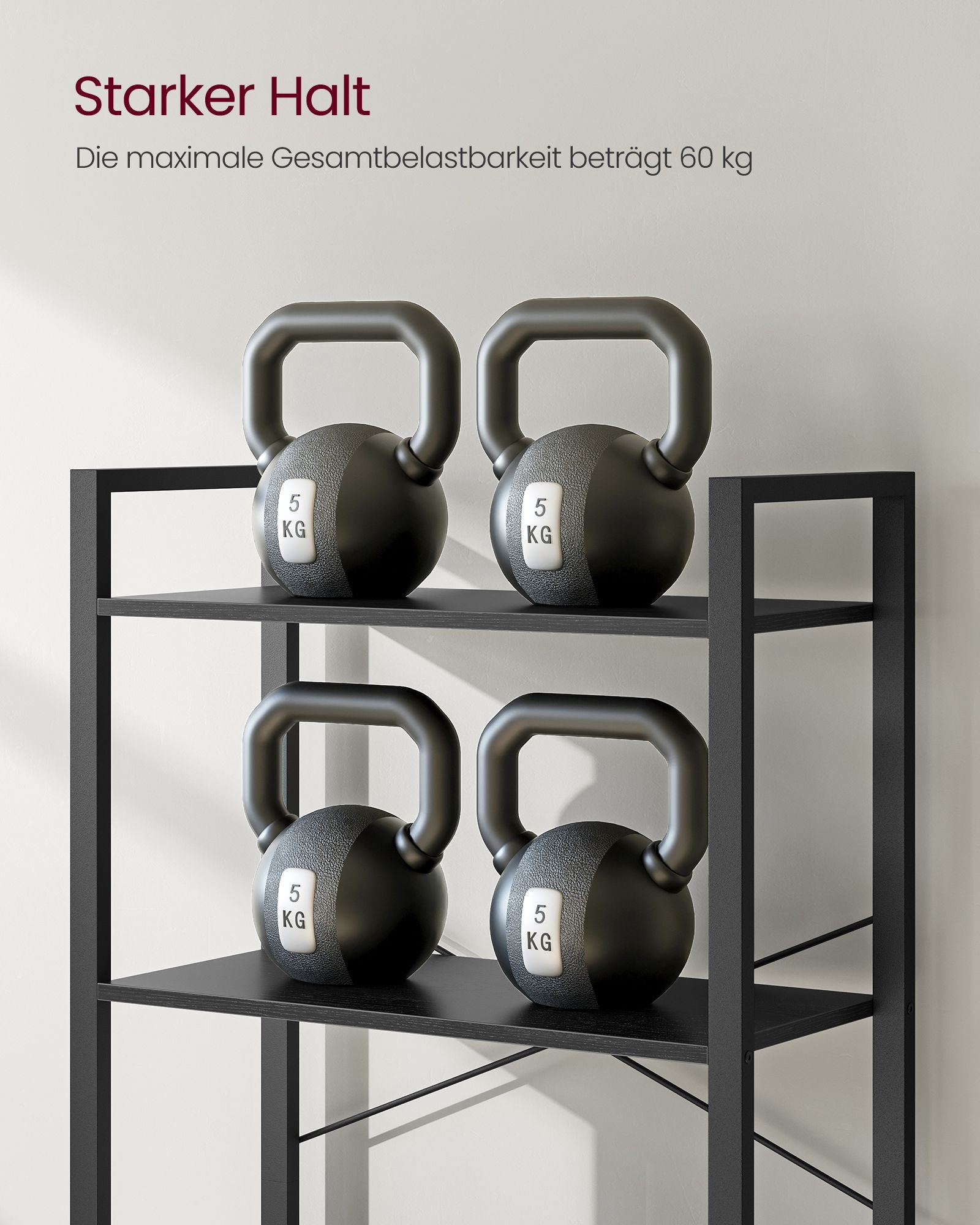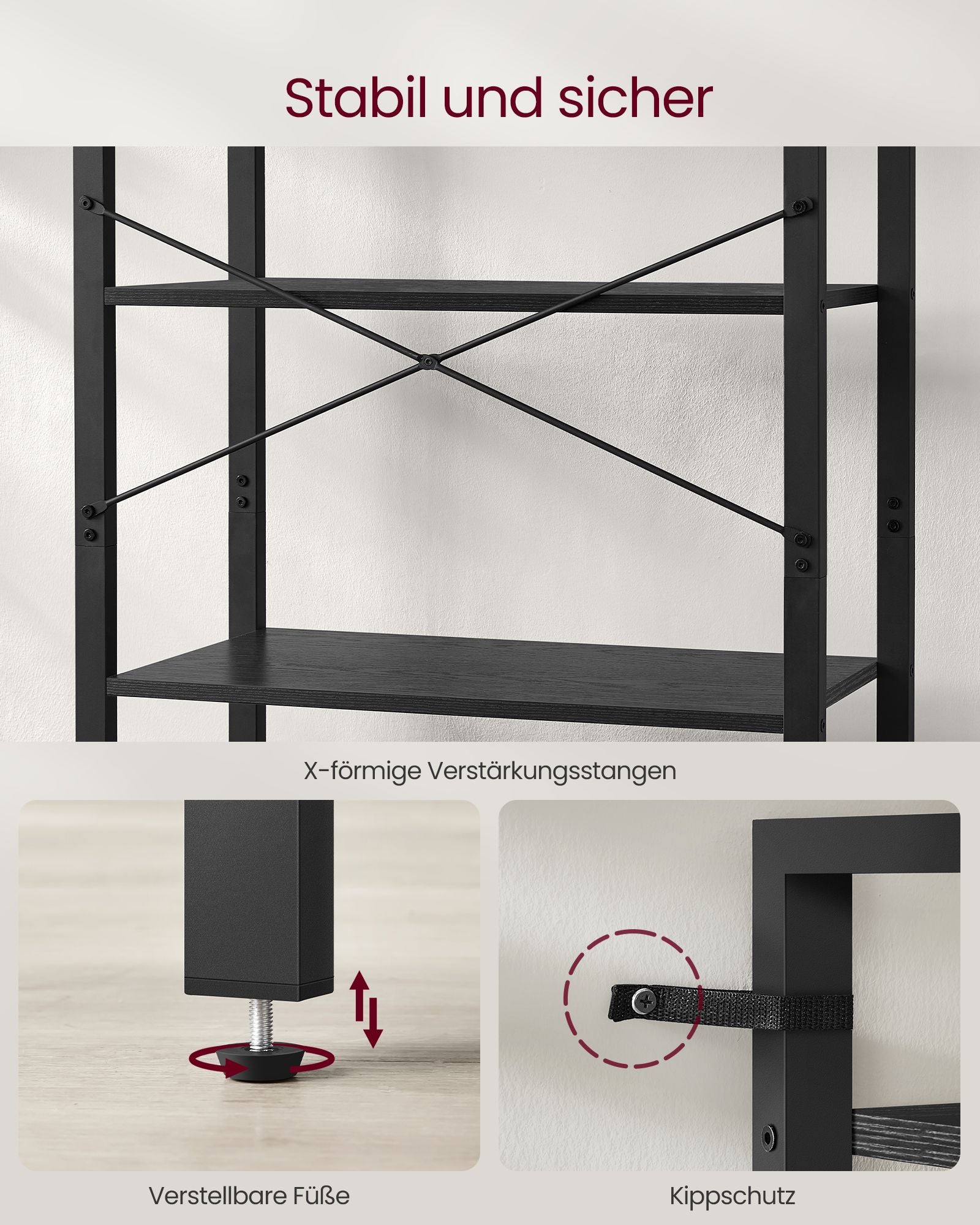 For at sikre maksimal stabilitet er denne reol udstyret med X-formede stænger, der styrker strukturen. Justerbare fødder sørger for, at reolen står sikkert, selv på ujævne overflader. Desuden medfølger et anti-tip kit, som gør det muligt at fastgøre reolen til væggen for ekstra sikkerhed. Du kan være sikker på, at dine ejendele opbevares trygt og stabilt.