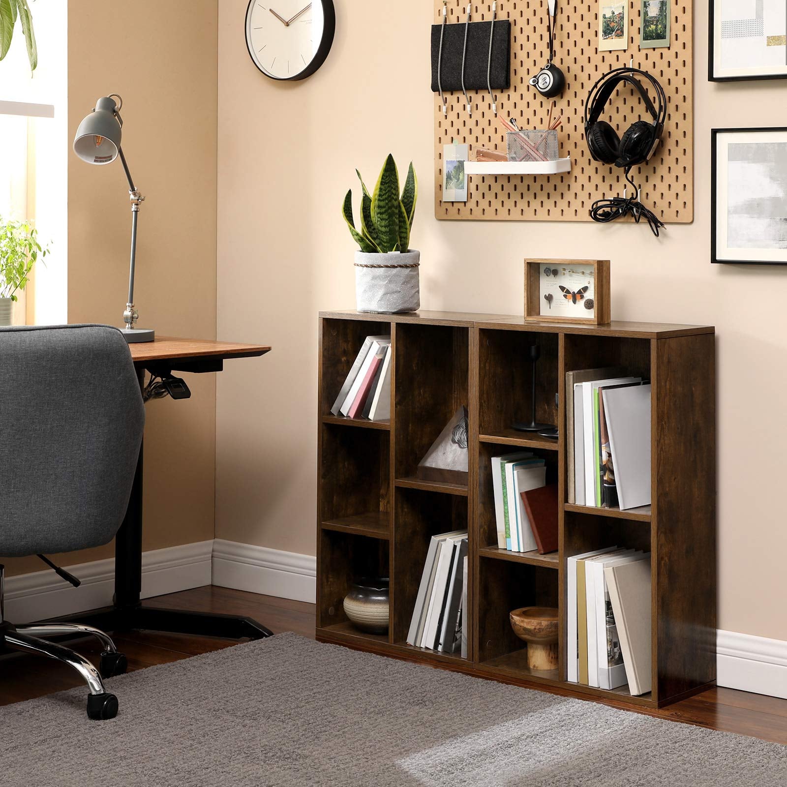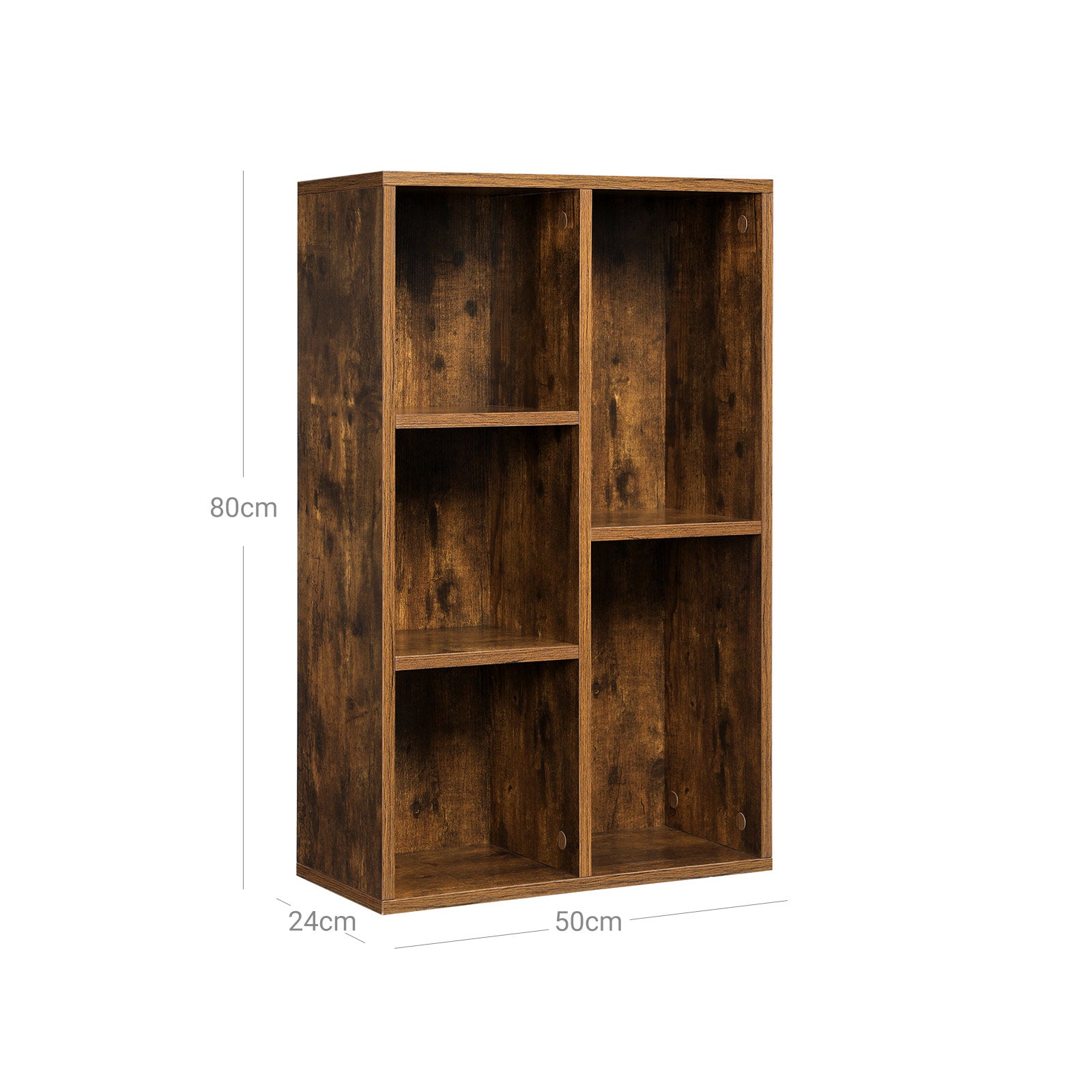 Denne moderne reol, med sine beskedne dimensioner på 50 x 24 x 80 cm, er den perfekte løsning til dig, der ønsker at spare gulvplads uden at gå på kompromis med opbevaringspladsen. Uanset om du har brug for et sted til dine bøger, DVD'er eller dekorationer, tilbyder denne reol rigelig plads i sine 5 rummelige rum, der hver især kan bære op til 10 kg. Den rustikke brune finish giver et varmt og indbydende præg til ethvert rum.