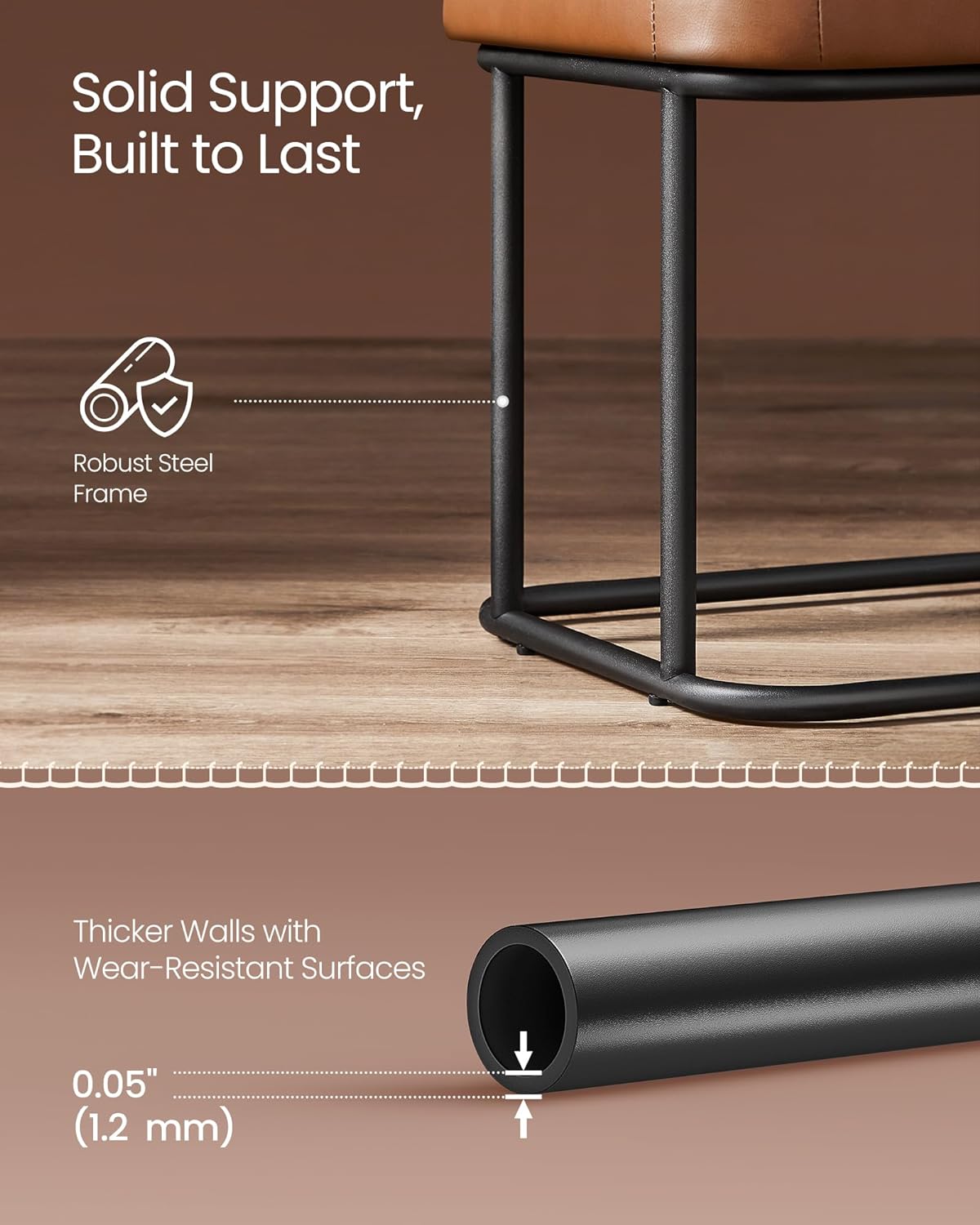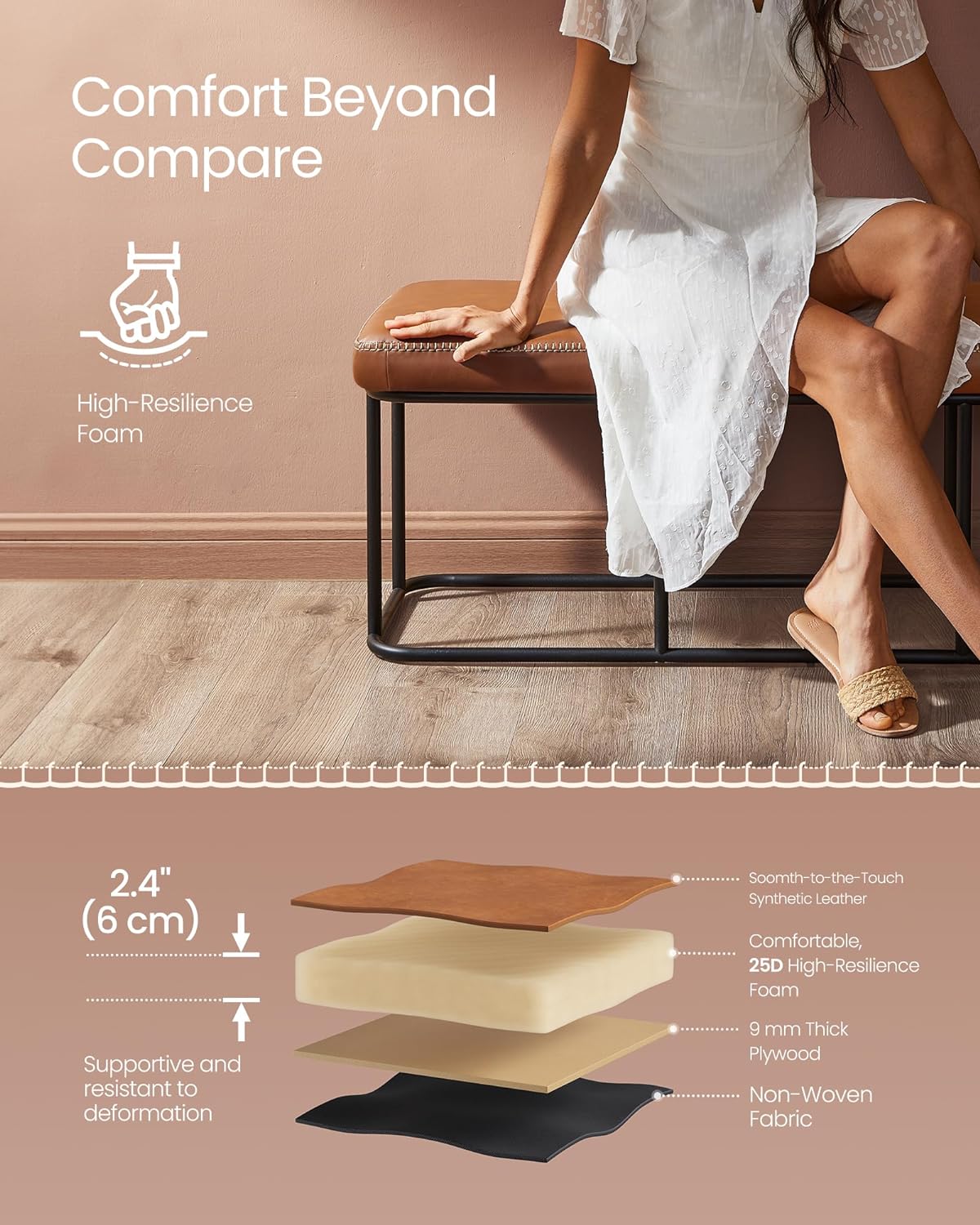 Denne flotte entre bænk er ikke kun let at samle, den er også lavet af slidstærkt kunstlæder, der er let at vedligeholde. Følg blot de klare instruktioner for at montere benene, og du er klar.