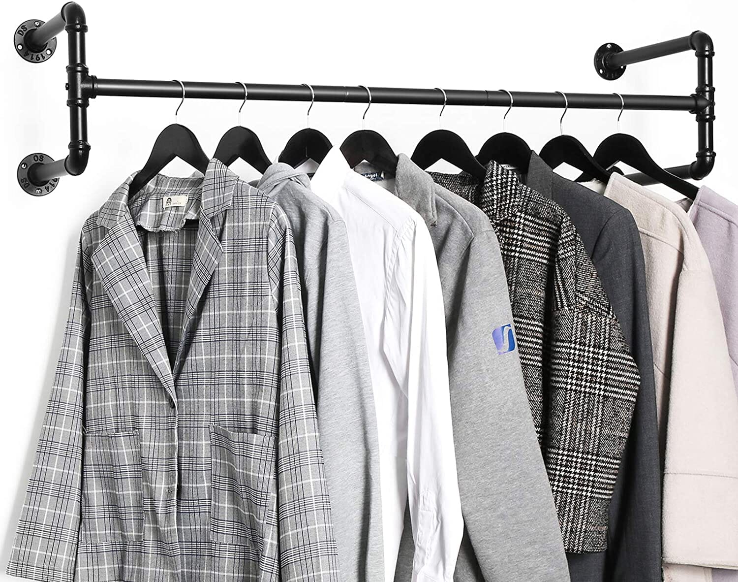 ER DIT SKAB VED AT VÆRE FYLDT? - Find ekstra opbevaringsplads med disse to tøjstænger. Et sort metalrør i industrielt design giver den rette støtte til dine frakker, jakker og meget mere. Det er den perfekte tilføjelse til dit hjem eller din butik!