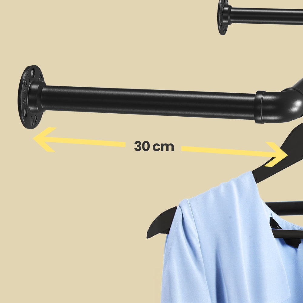 No Flimsy Pieces: Each rail can hold up to 60 kg when mounted on solid brick or concrete walls, and 45 kg on wooden walls. Feel free to hang heavy clothes! Simply connect the pipes and mount the rail on the wall