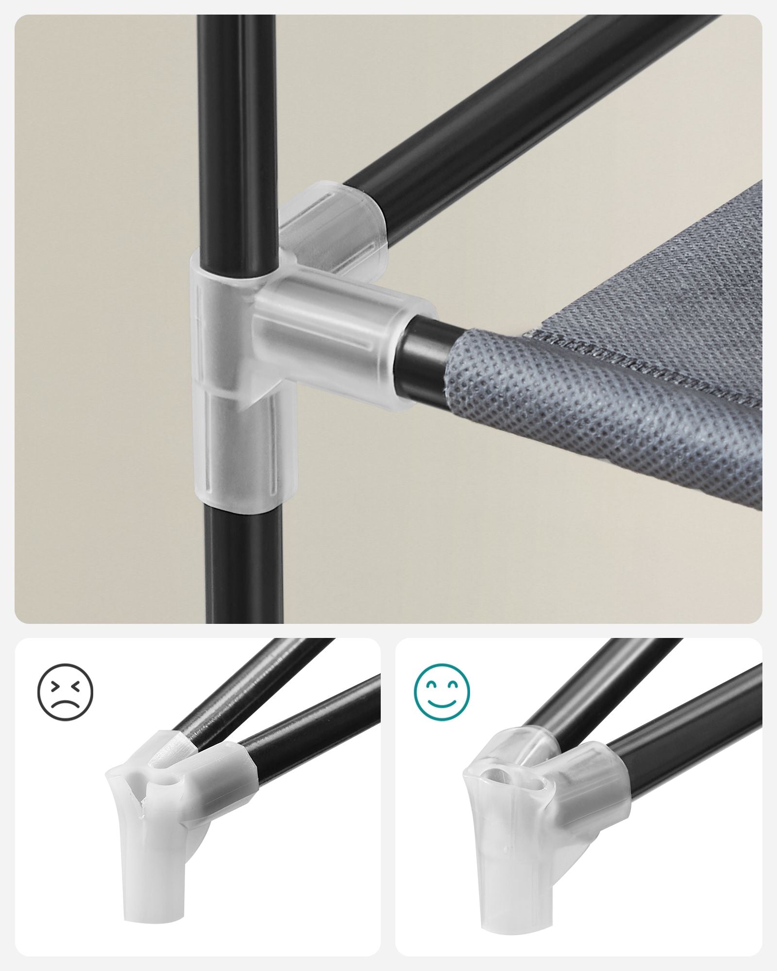 Ikke mere brug af timer på at samle en skoreol; monteringen her handler kun om at fastgøre rørerne i plastikforbinderne. Det næste, du skal gøre, er at sætte dine 4-5 par sko på hver hylde