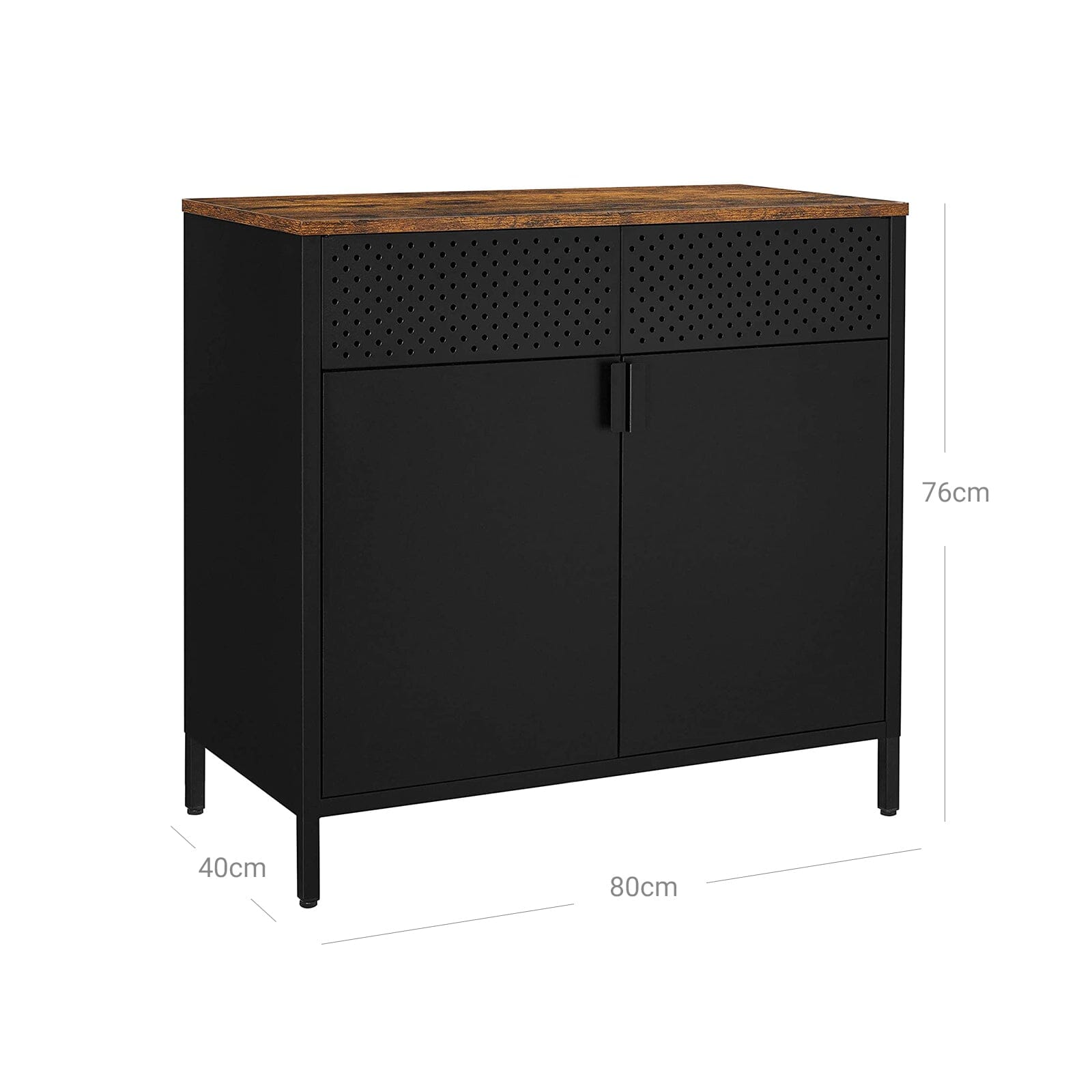 Stilfuldt hjem: Rustik træplade og sort metalramme til et opbevaringsskab i industriel stil, der er perfekt til at vise dekorationer frem og gemme grimme ting og sager væk. Højdejusterbar hylde, så den passer til dine behov.