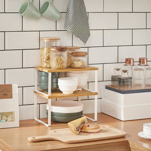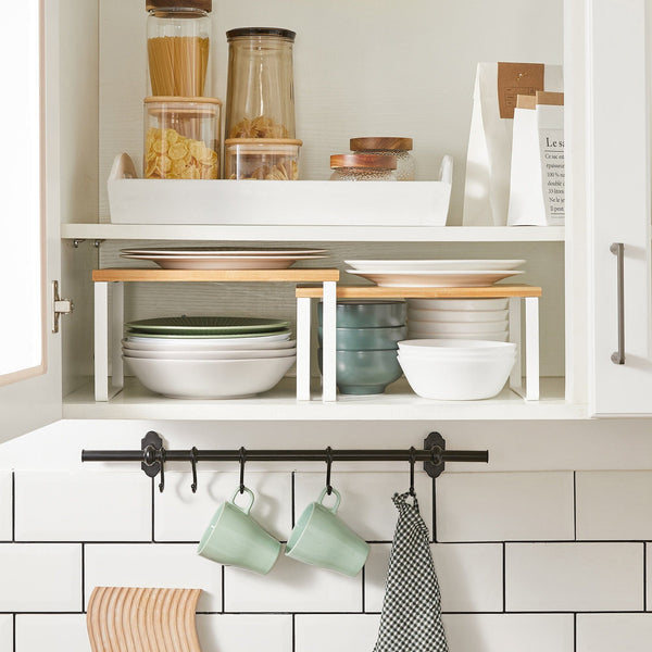 Du vil aldrig løbe tør for opbevaringsmuligheder igen! Disse 2 multifunktionelle hylder kan udvide din bordplade, holde op til 15 kg hver og passe ind i enhver køkkenstil. Forlæng levetiden for dine kaosmagere i spisekammeret med et robust sæt hylder.