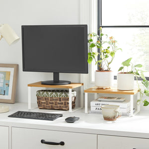 Stilfulde og praktiske, disse hylder er en iøjnefaldende tilføjelse til dit køkken! Med naturlig bambus og stærke metalrammer giver de dig friheden til at stable dem eller sætte dem i L-form - tilpas dem efter dine præferencer.