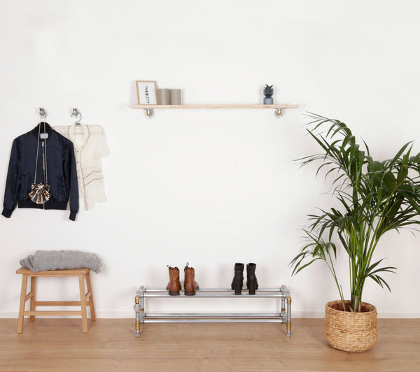 Oplev enestående elegance i din boligindretning med vores Ella Hyldeknægt i sølv vandrør. Denne hyldeknægt i metal er det ultimative statement-piece, der tilfører en eksklusiv følelse til ethvert rum. Sølv farvet vandrør harmonerer med enhver indretningsstil og skaber en tidløs atmosfære.