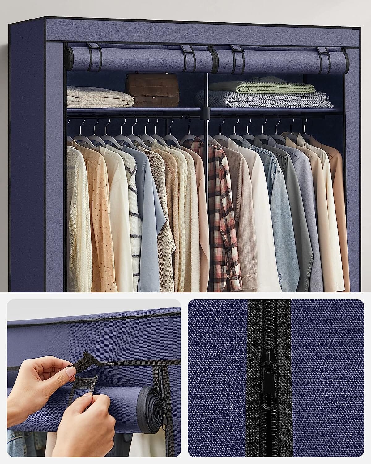 Med vores garderobeskab får du et kvalitetsprodukt af høj kvalitet. Det er lavet af slidstærkt non-woven stof og er både praktisk og stilfuldt. Skab mere ro og harmoni i dit hjem med dette garderobeskab, der giver dig mulighed for at eliminere tøjkaos, selv i små lejligheder.