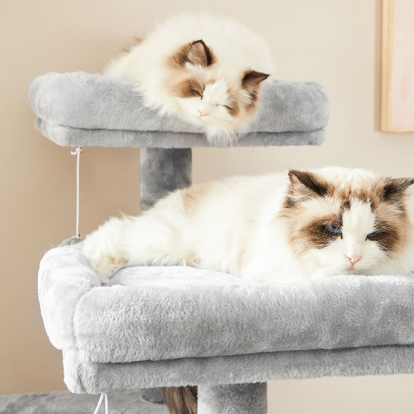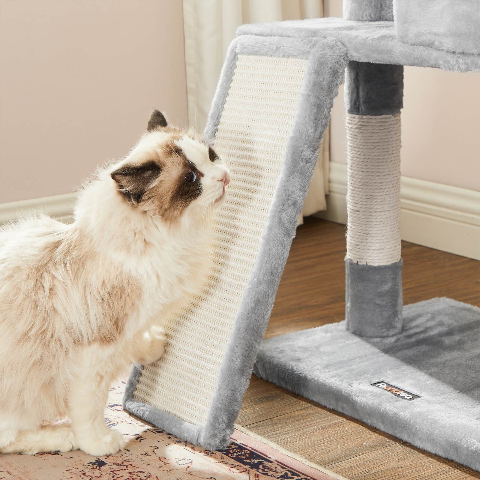 Har du en energisk kat? Ingen grund til bekymring. Dette kradsetræ har en forstærket base for ekstra stabilitet og et anti-vælt kit for øget sikkerhed. Det er bygget til at holde til selv de mest legesyge katte, som elsker at hoppe og lege.
