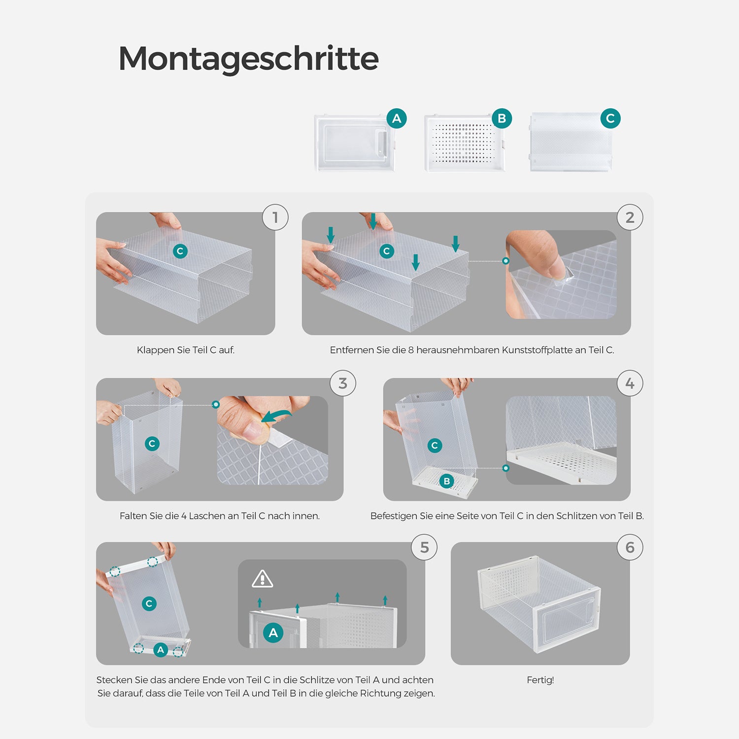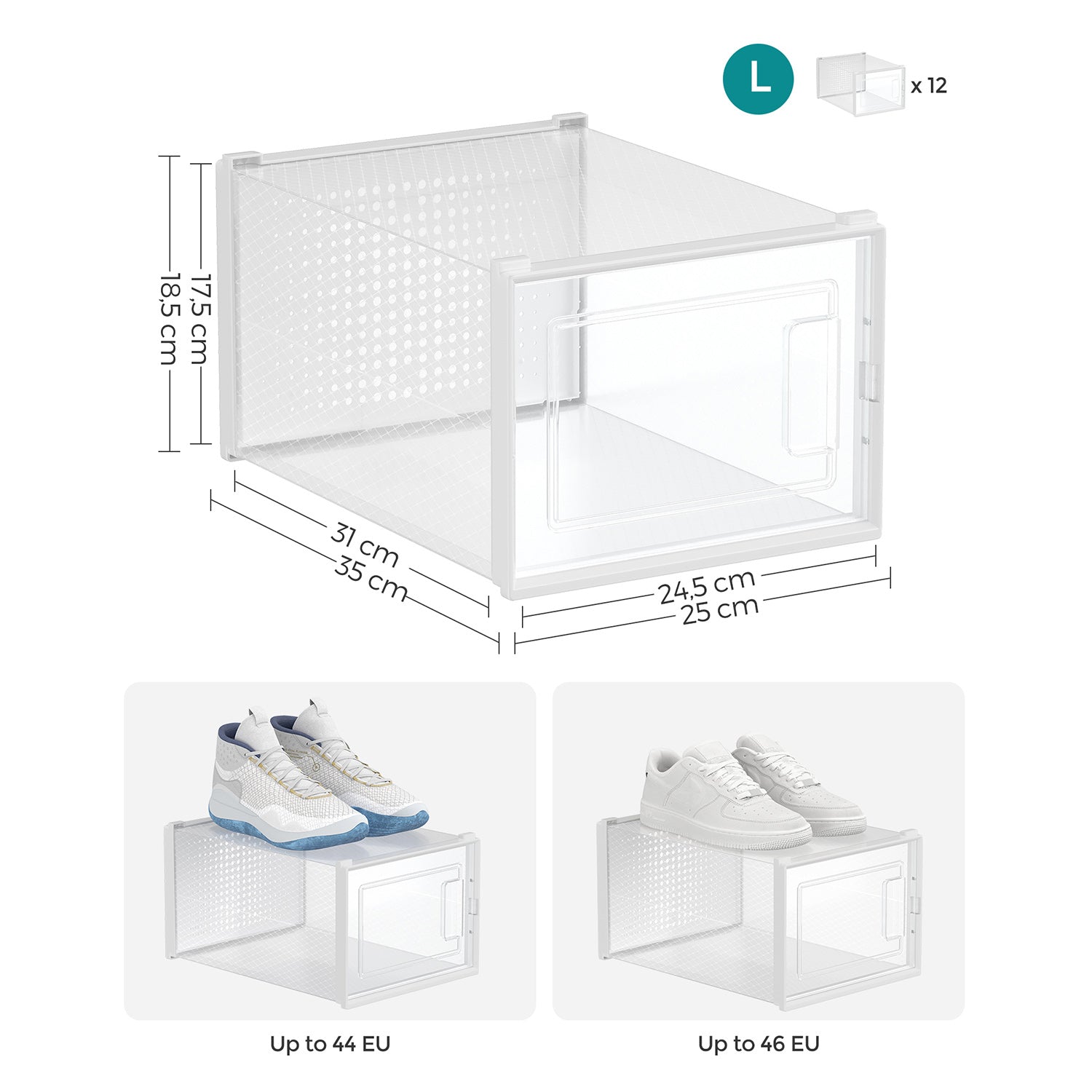 Har du problemer med at finde dine sko blandt en bunke kaotiske kasser? Med dette sæt på 12 transparente skoæsker kan du endelig få styr på din skosamling. De gennemsigtige æsker giver dig et klart overblik, så du nemt kan finde den perfekte sko uden at skulle åbne hver enkelt kasse. Oplev en ny grad af orden og nem adgang til dine sko!