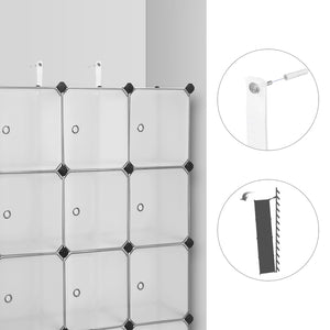 Er du træt af småting, der falder af hylderne, eller tøj, der samler støv? Hver kube er udstyret med en dør, der sikrer, at dine ejendele forbliver rene og organiserede. De medfølgende paraplyformede kroge sørger for, at dørene ikke svinger op uventet, hvilket giver dig en sikker opbevaringsløsning.