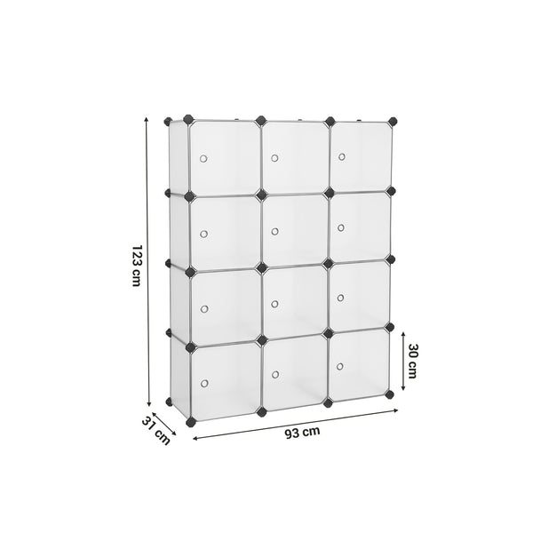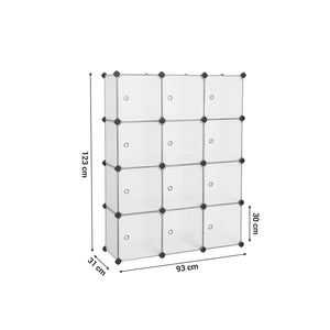 Med disse opbevaringskasser kan du nemt organisere alt fra tøj og sko til legetøj og magasiner. Hver af de 12 kuber måler 30 x 30 x 30 cm, hvilket giver dig rigelig plads til at holde dit hjem ryddeligt. Uanset om du har brug for en garderobe i soveværelset, en skoreol i gangen eller en opbevaringsenhed i kælderen, kan dette skab tilpasses dine behov og hjælpe dig med at optimere selv de mindste rum.