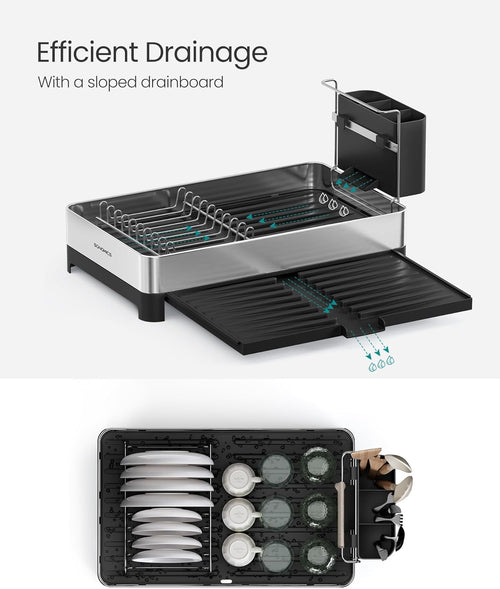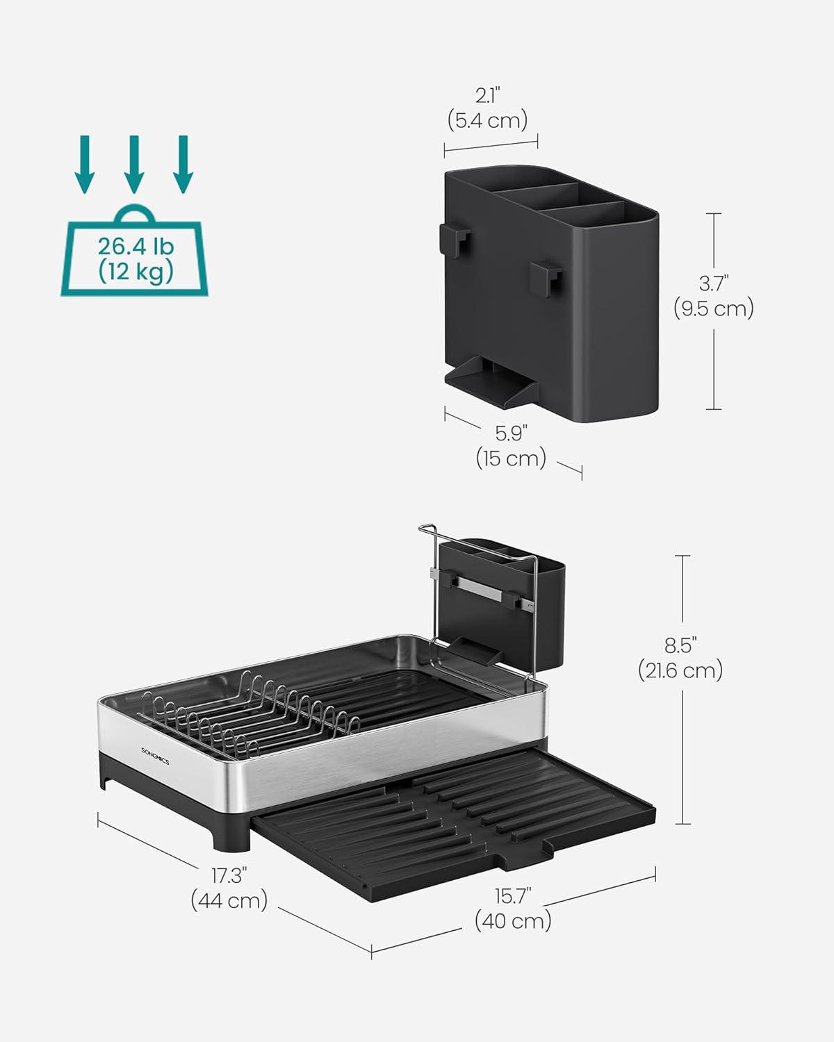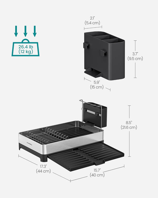 Dette opvaskestativ er lavet af holdbart rustfrit stål, som er både korrosionsbestandigt og rustfrit. Med en kapacitet på 12 kg kan det nemt bære dine daglige køkkenting og sikre stabilitet og langvarig brug.