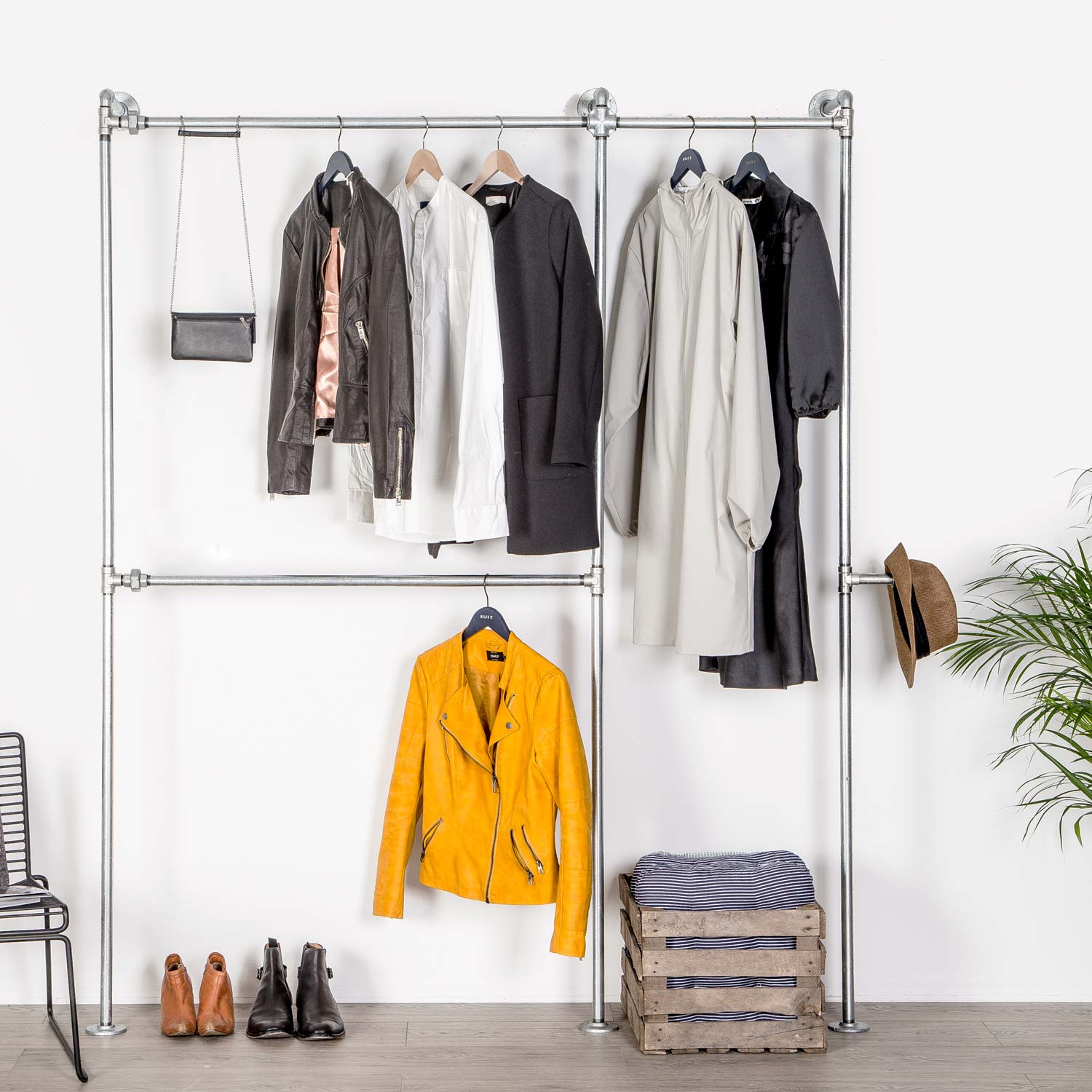 Hos RAW58 tilbyder vi indretningsløsninger til samtlige af hjemmets rum. Særligt er vi kendt for vores garderobeløsninger, både i form af tøjstativer og bøjlestænger af vandrør, men vi tilbyder også produkter til ophæng af redskaber i køkkenet og til organisering af fodtøj i entréen. Vandrørene og samlingerne fås i et udvalg af farver, så du selv kan være med til at sætte et skræddersyet præg på netop din indretning.