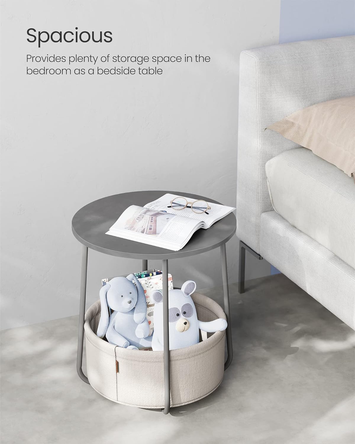 Alsidigt bord - Dette bordsofabord i metal, spånplader og polyesterstof er den perfekte tilføjelse til din stue eller soveværelse. Brug det som sofabord, sengebord eller noget helt andet for at få ekstra plads.