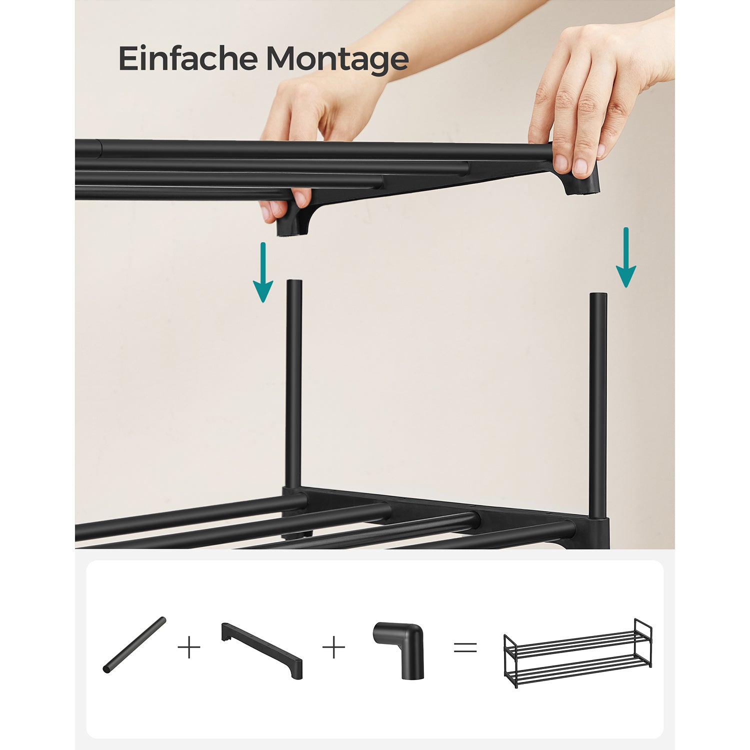 Skab et stabilt og pålideligt opbevaringsområde med denne robuste skohylde. De tykke metalrør, som er forbundet med kvalitetsplastforbindelser, sikrer, at hver hylde kan bære op til 12,5 kg. Det betyder, at uanset om du opbevarer tunge støvler eller lette sneakers, vil denne skoreol give dine sko den stærke støtte, de har brug for. Den er designet til at holde og er en sikker løsning til ethvert rum i dit hjem.