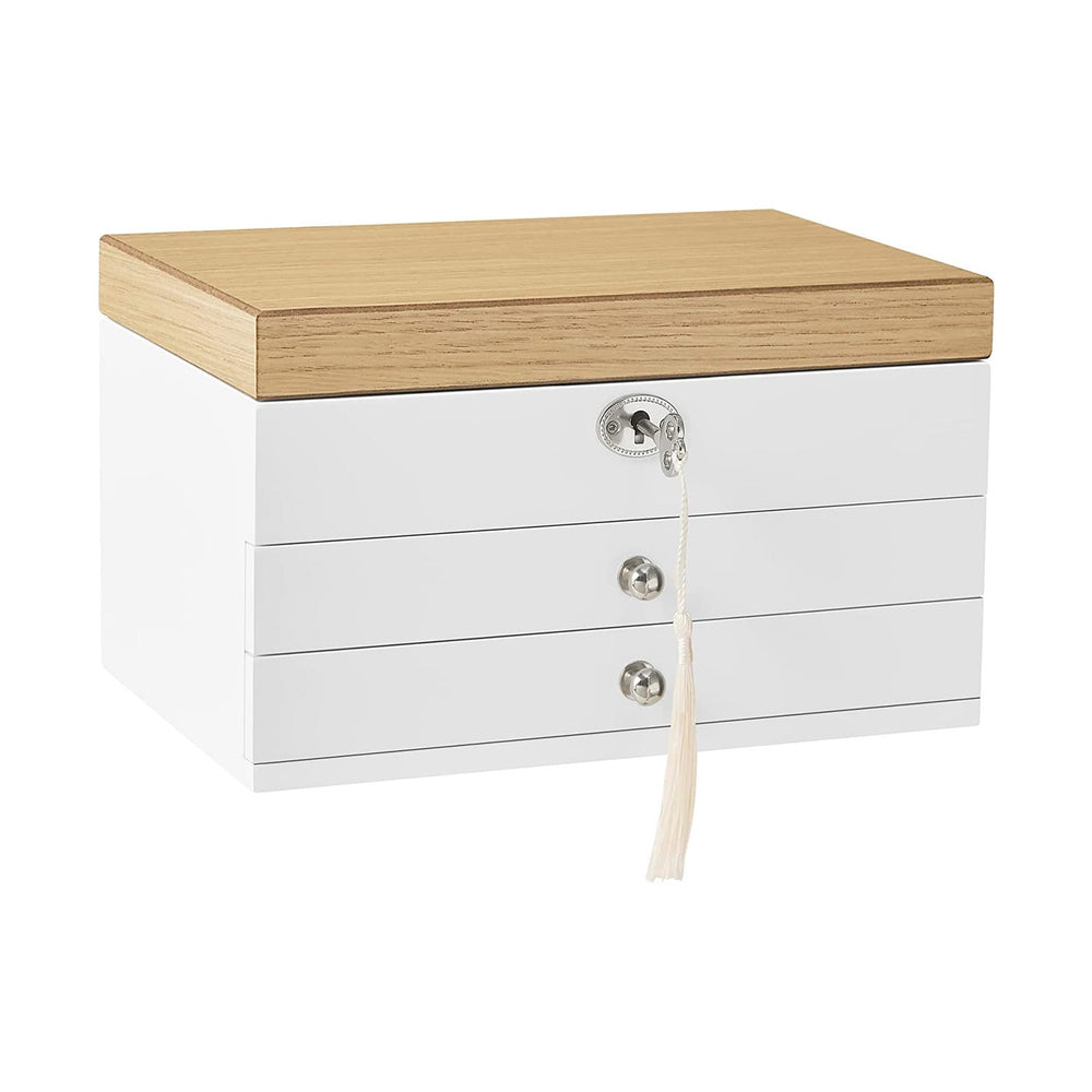 Når smykkesamlingen vokser, kan det være en udfordring at opbevare alle dine smykker uden at de tager skade, bliver viklet ind i hinanden og i det hele taget er til at holde overblik over. Hos RAW58 forstår vi dette dilemma og tilbyder en bred vifte af smykkeopbevaring til både de helt store smykkesamlinger, der kræver et decideret smykkeskabl for at kunne blive udstillet, og de mindre af slagsen, der kan være i et smykkeskrin eller på et smykkestativ. Gå på opdagelse i vores udvalg og find det smykkeskrin, som passer til din samling, så du får en løsning, der kan benyttes til at fremvise smykkerne, mens de opbevares sikkert og beskyttet mod støv.