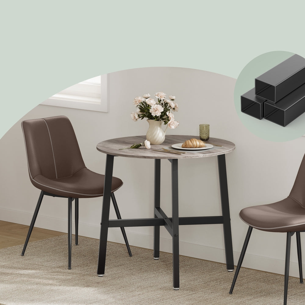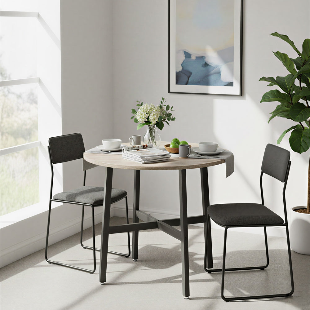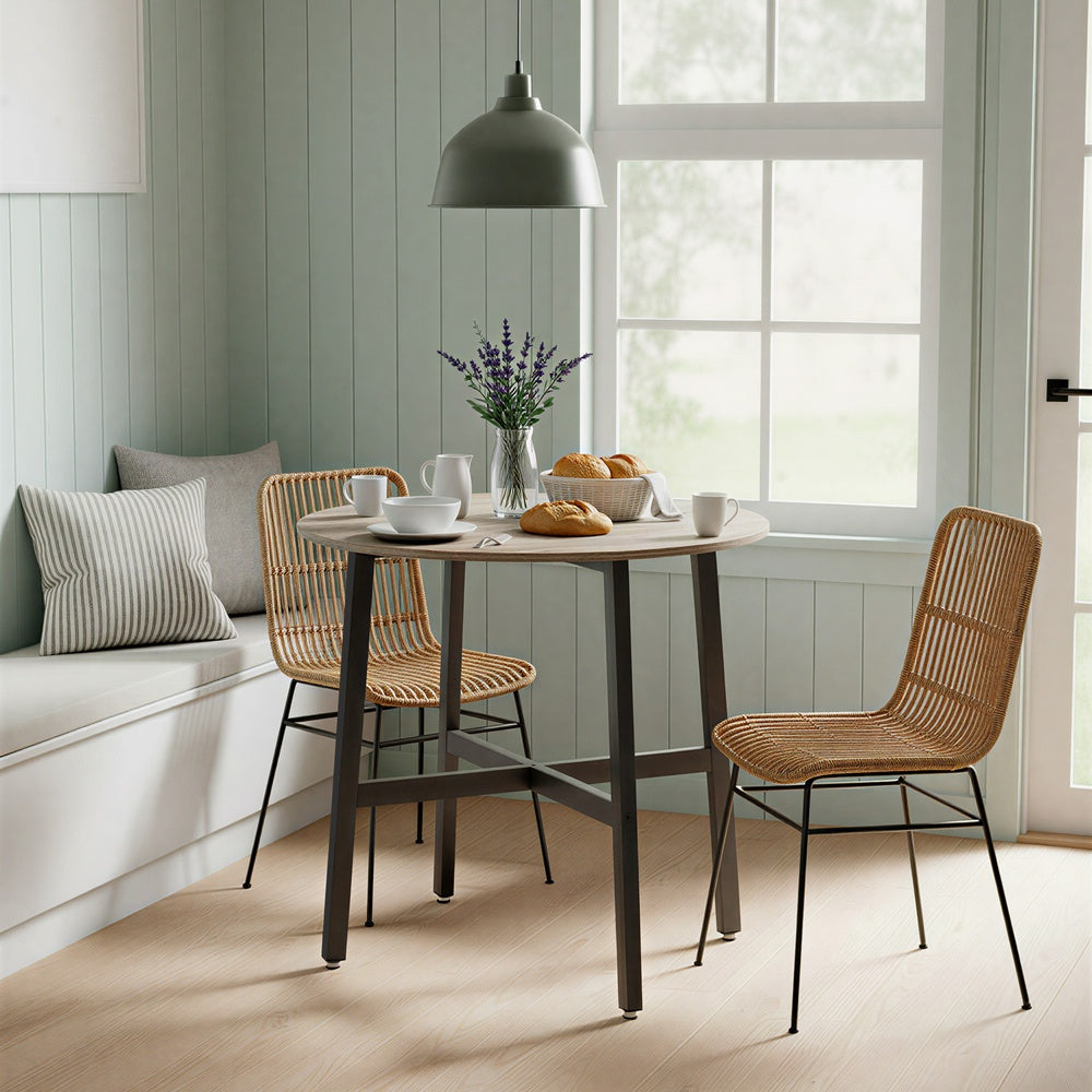 Med sin sorte stålramme og varme trætoner tilfører dette runde spisebord et stilfuldt industrielt udtryk til dit køkken og skaber en hyggelig ramme om måltiderne.