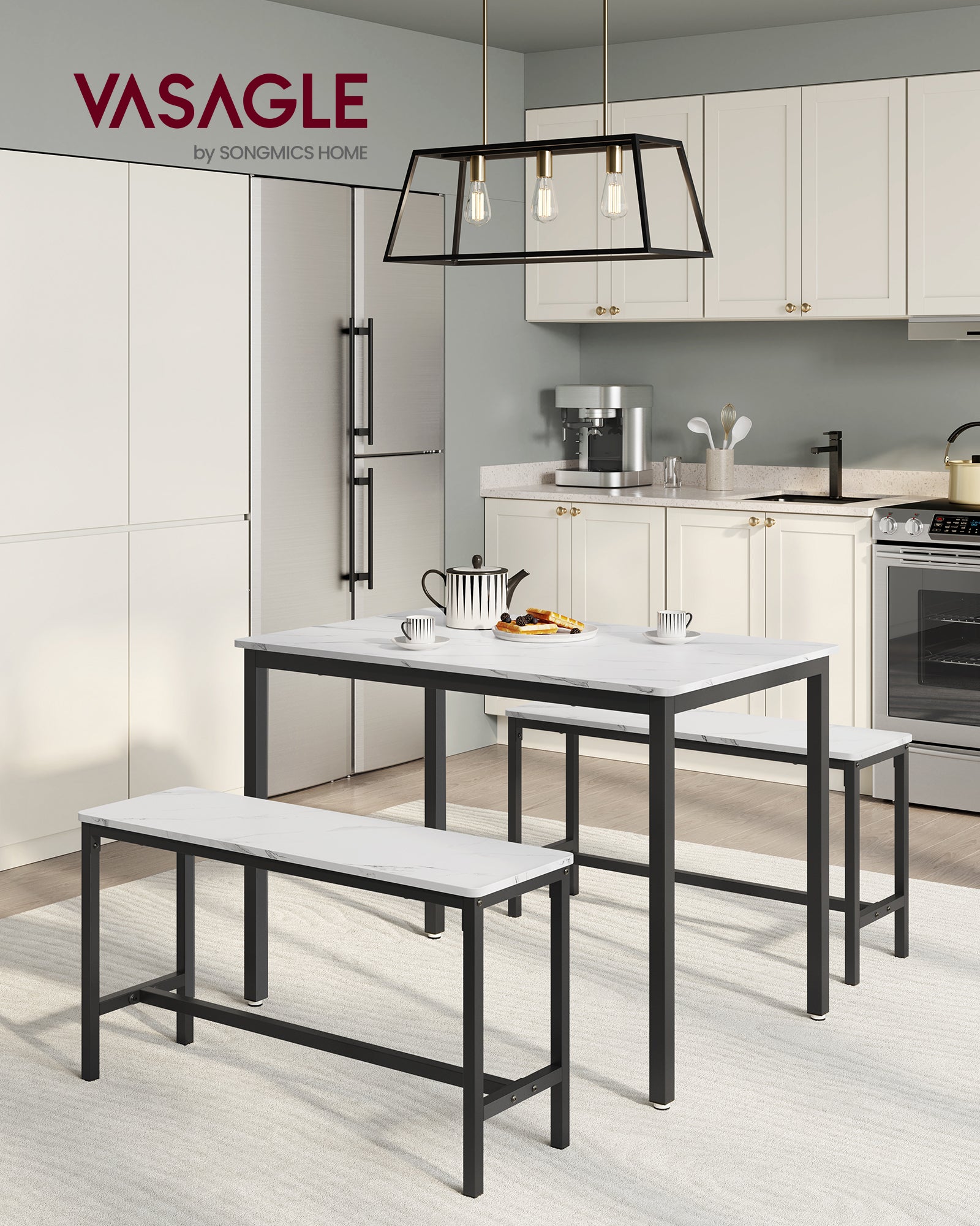 Farvekombinationen af marmorhvid og blæk sort giver en moderne stil, der vil opdatere ethvert spiseområde. Dette spisebord sæt tilføjer et strejf af elegance til dit spisestue, køkken eller stue, hvilket skaber en indbydende atmosfære for dig og dine gæster.