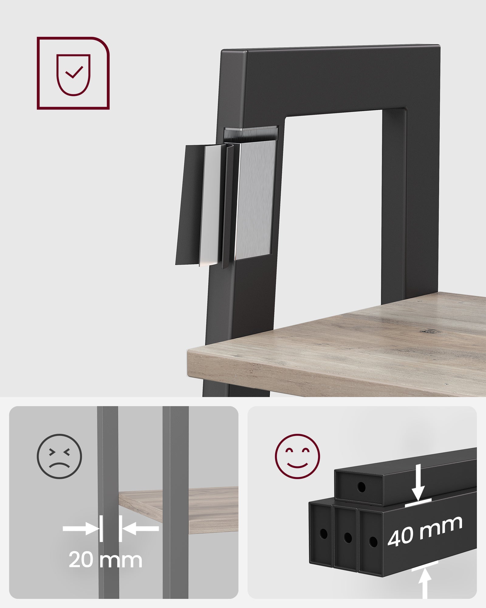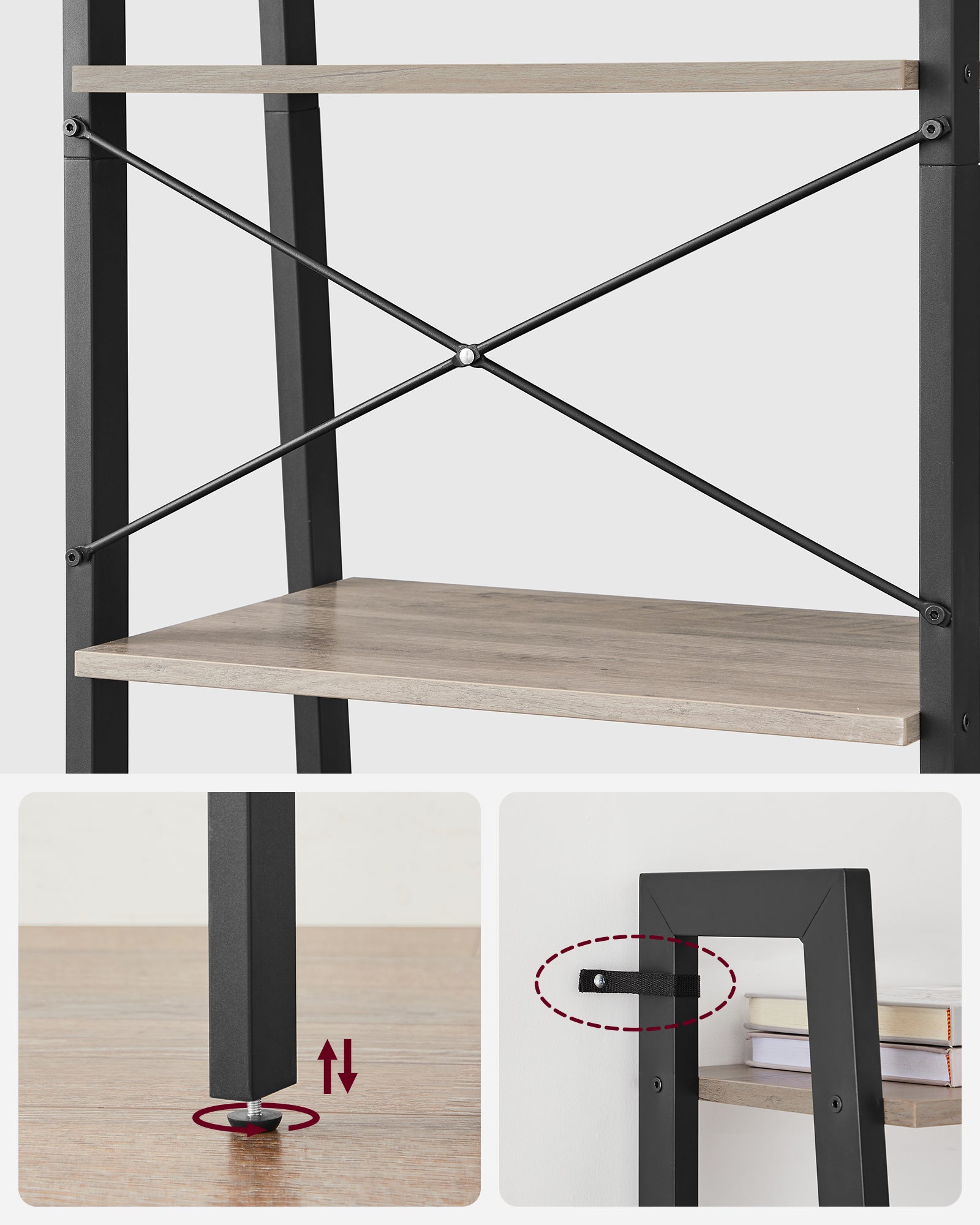 Stigereolen står solidt med en stærk ramme, X-formede forstærkninger, justerbare fødder og et anti-tip-sæt, som giver ekstra stabilitet i hverdagen.