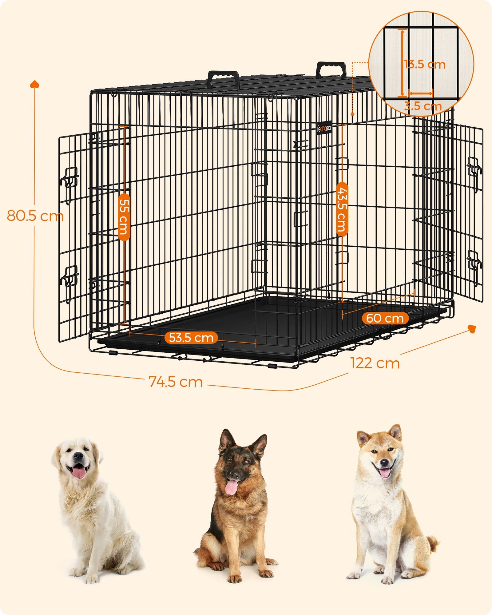 Oplev det ideelle transportbur til store hunde som Retriever, Bobtail eller Schäferhund. Dette bur er designet med en rummelig konstruktion og generøs gitterafstand, som sikrer, at din hund har masser af plads uden at føle sig begrænset. Med to døre får du nem adgang og fleksibilitet til at placere buret hvor som helst i dit hjem eller bil.