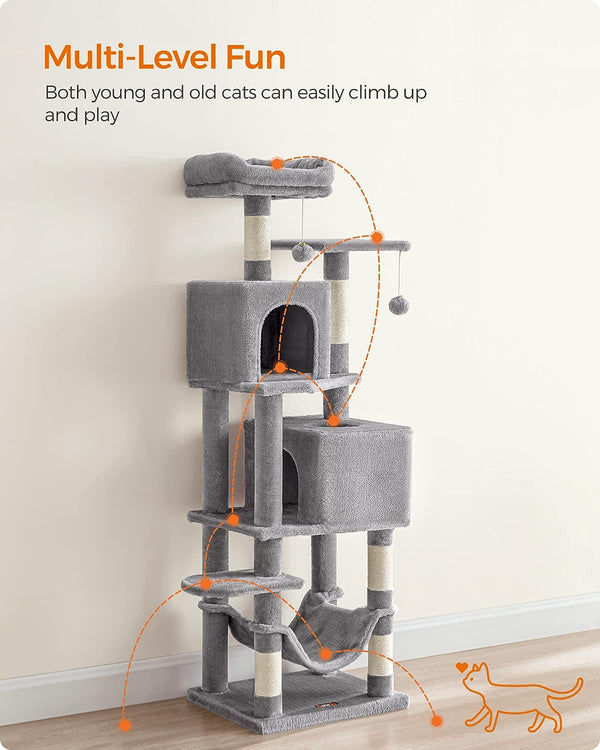 Oplev ultimativ luksus og underholdning for din kat med Feandrea katte træet. Dette 155 cm høje katte tårn er designet til at forkæle dine indendørs katte med endeløse timer af leg, hvile og udforskning. Udført i en let grå farve, tilføjer det et stilfuldt touch til dit hjem, samtidig med at det giver et sikkert og stimulerende miljø for dine pelsede venner.