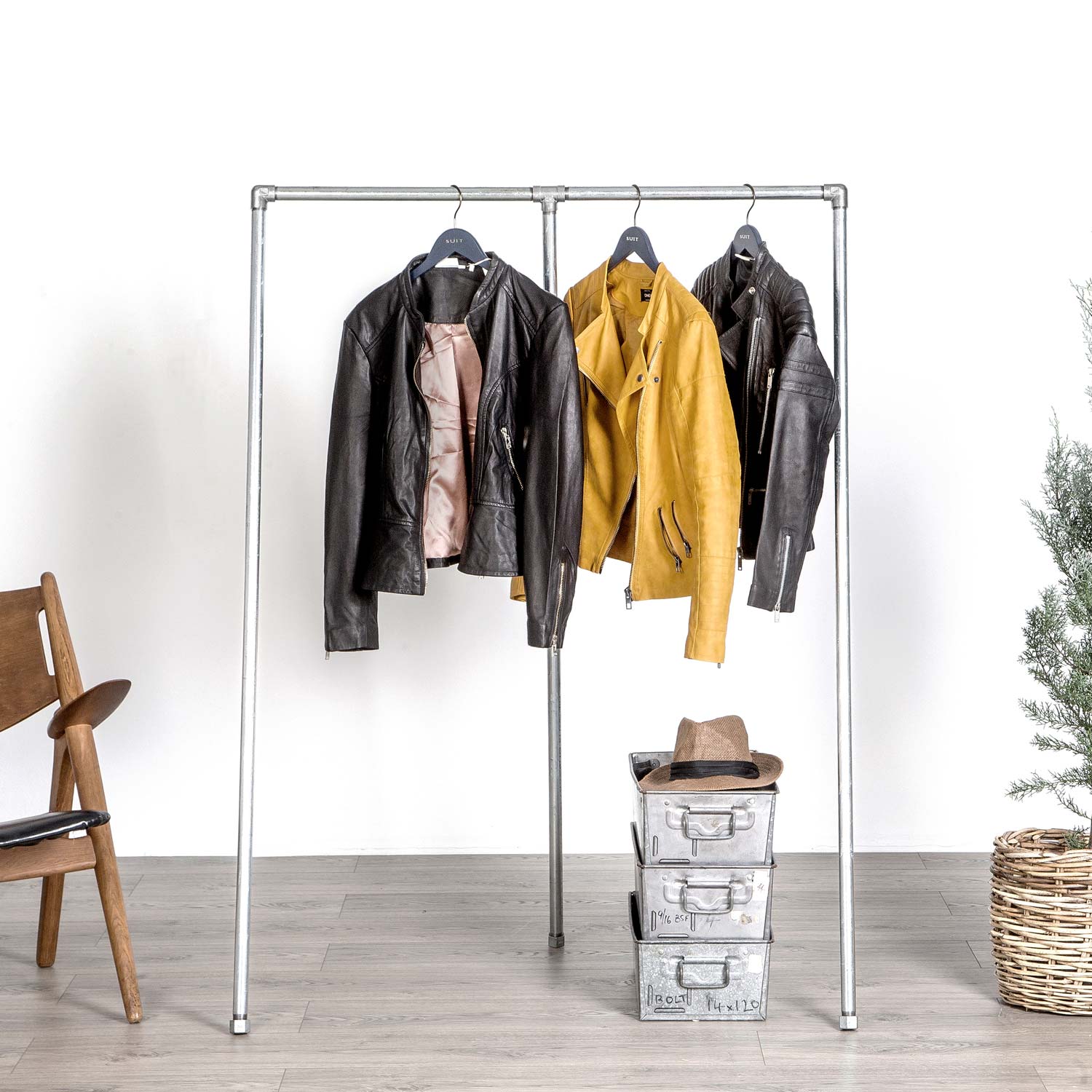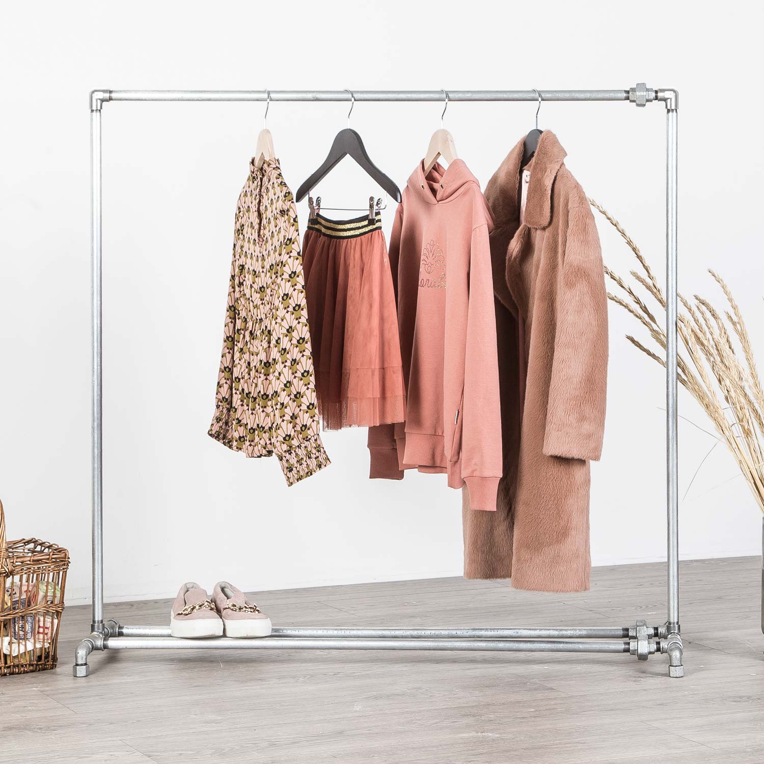 Vandrør tøjstativ i galvaniserede vvs rør. Passer til enhver stil i hjemmet fra en rustik indretning til en elegant minimalistisk styling. Med indbygget skohylde i bunden er der masser af opbevaringsplads. Vandrør tøjstativ i galvaniserede vvs rør. Passer til enhver stil i hjemmet fra en rustik indretning til en elegant minimalistisk styling. Med indbygget skohylde i bunden er der masser af opbevaringsplads.