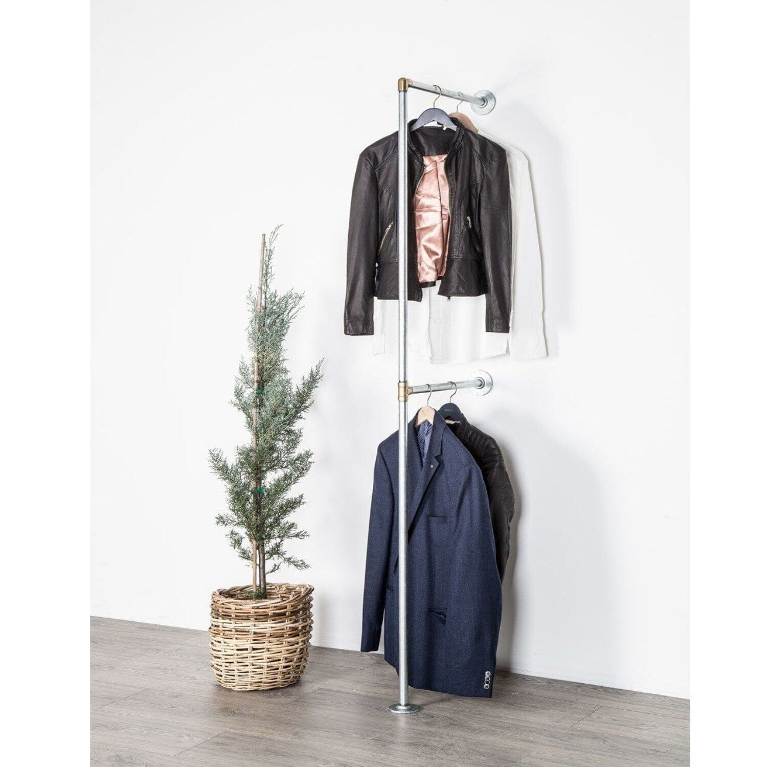 Velkommen til det ultimative tøjstativ, der ikke blot organiserer dit tøj, men også tilføjer en eksklusiv og industrielt inspireret æstetik til dit hjem eller erhverv. Simon Tøjstativ i vandrør er en bøjlestang til væg i farven sølv med messing der er skabt til at imponere og opfylde dine behov for pladsbesparende tøjopbevaring med stil.