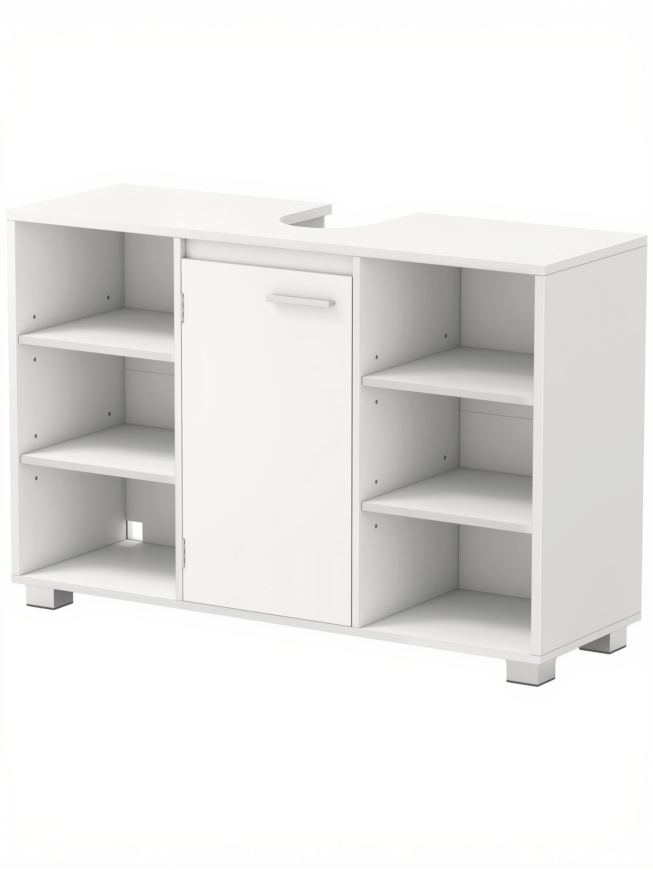 Sørg for at måle pladsen omkring afløb og hyldernes afstand til gulvet, så underskabet passer under din håndvask. Det er ikke egnet til håndvaske med søjle.