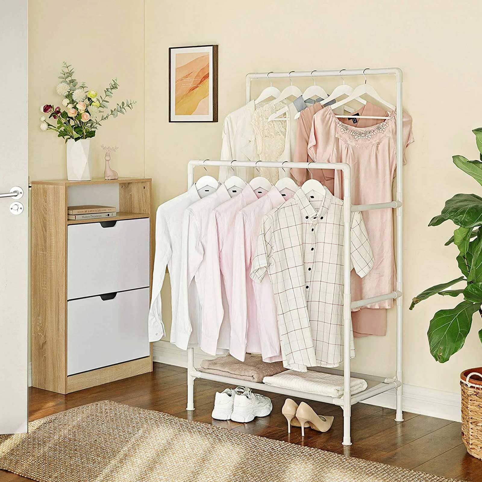 Urban stil: Det har et urbant design med en lækker stofhylde i bunden - hvilket tilføjer et dejligt strejf af stil til din indretning. Med sin bæreevne på op til 70 kg kan du nemt få plads til alle dine gæsters tøj også!