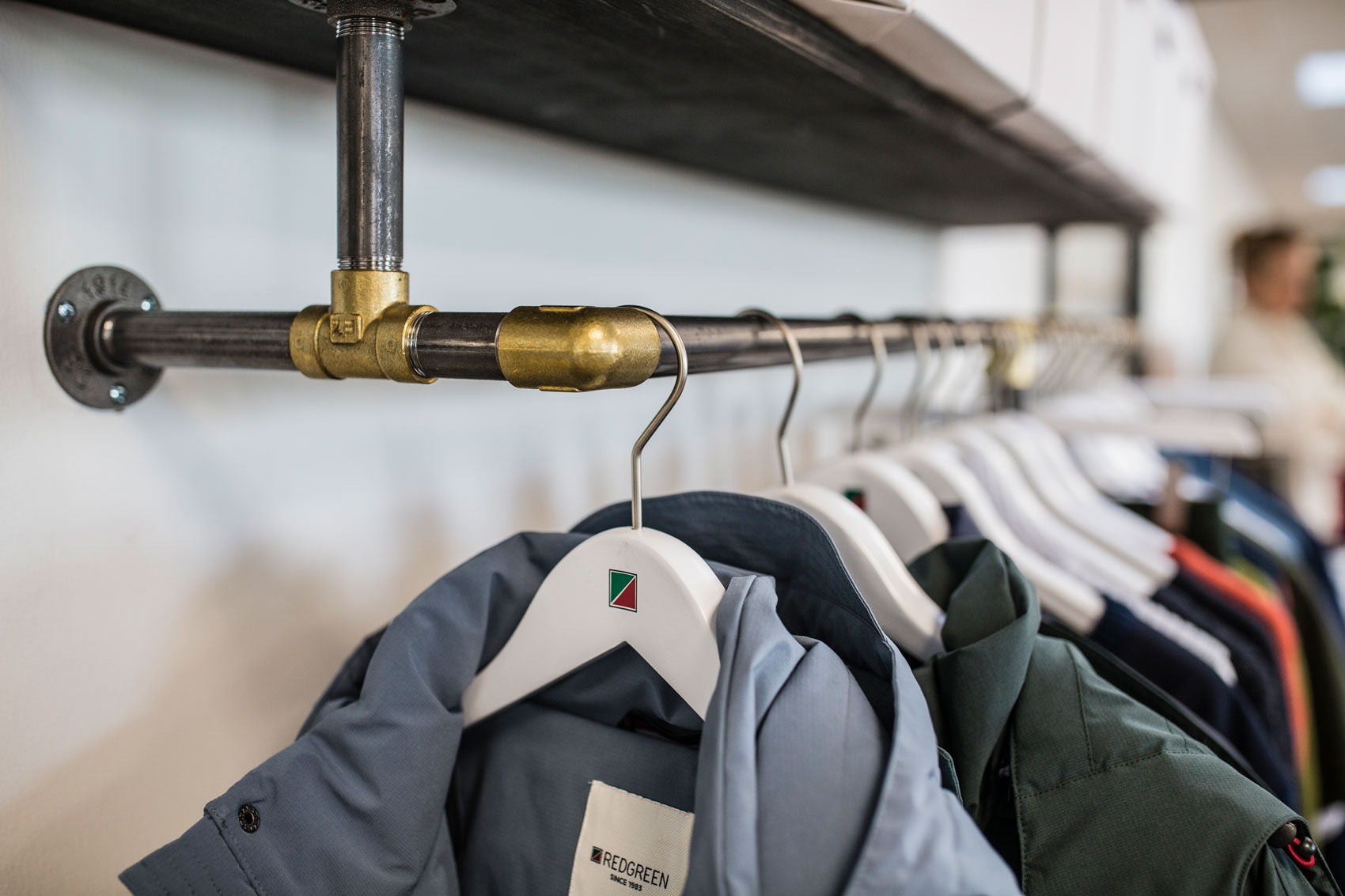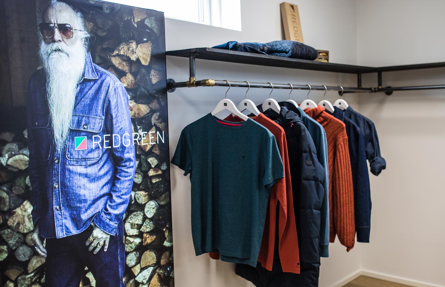 Redgreen kontaktede os fordi at de skulle udsmykke deres showroom/møderum med tøjstativer og ophæng.