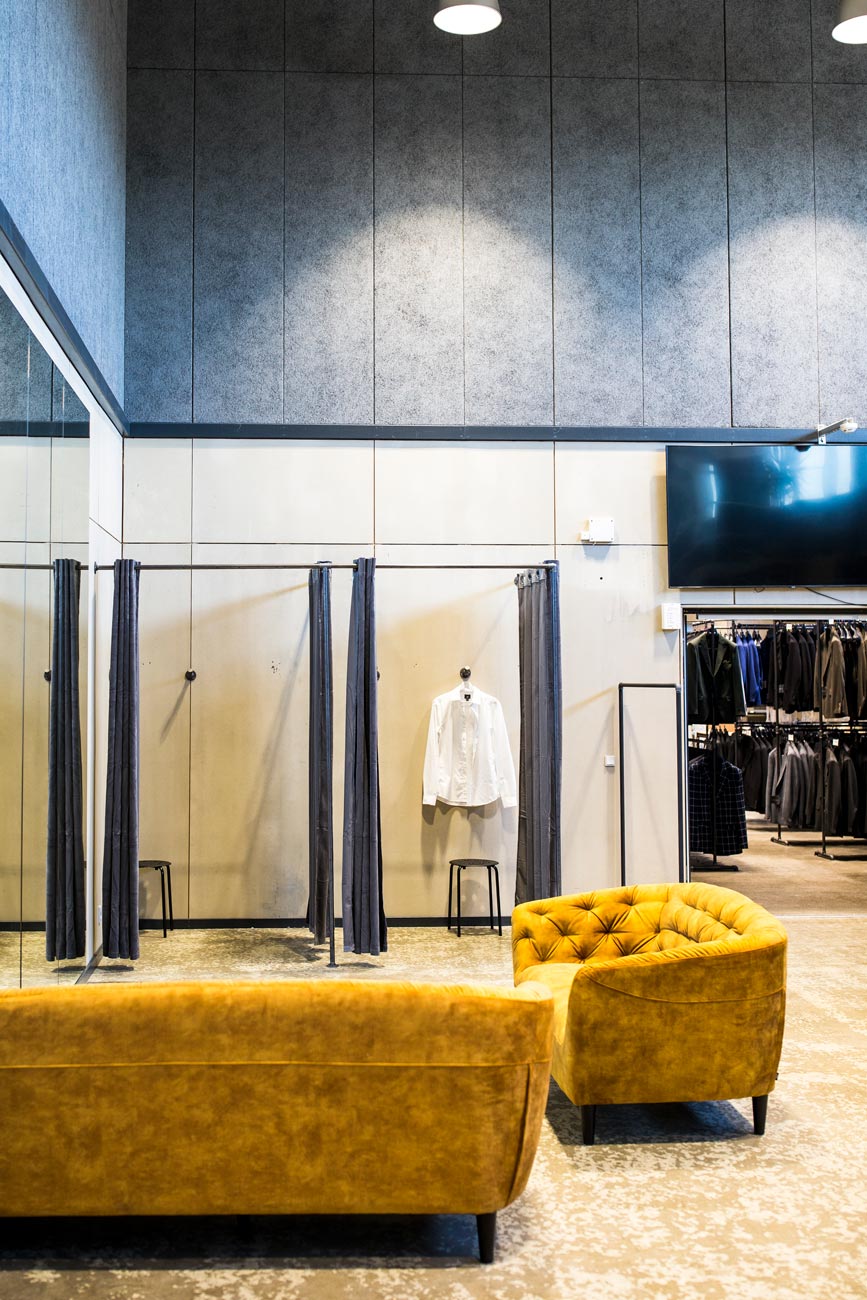 Prøverummet hos SuitClub er lavet på specialmål så det passede perfekt ind i deres lokaler