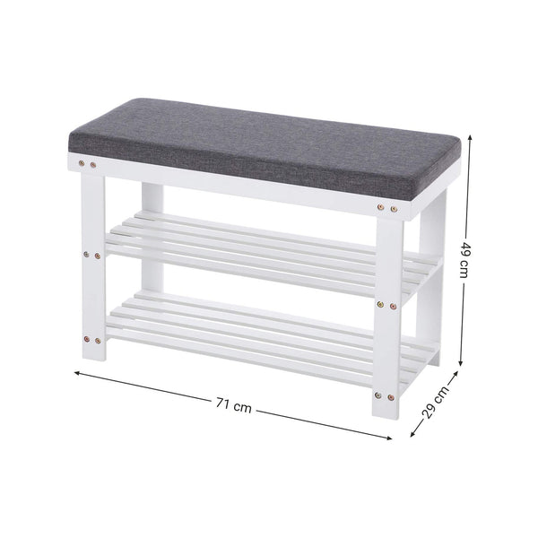 Denne skobænk er ikke kun komfortabel, men også yderst stabil og holdbar. Den forstærkede konstruktion og de kraftige materialer gør, at bænken kan bære op til 150 kg på sædet og 20 kg på hver hylde. Uanset om du har tunge støvler eller mange sko, kan du stole på, at denne bænks robuste design holder til daglig brug.