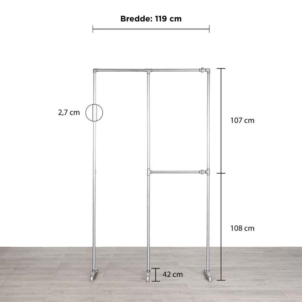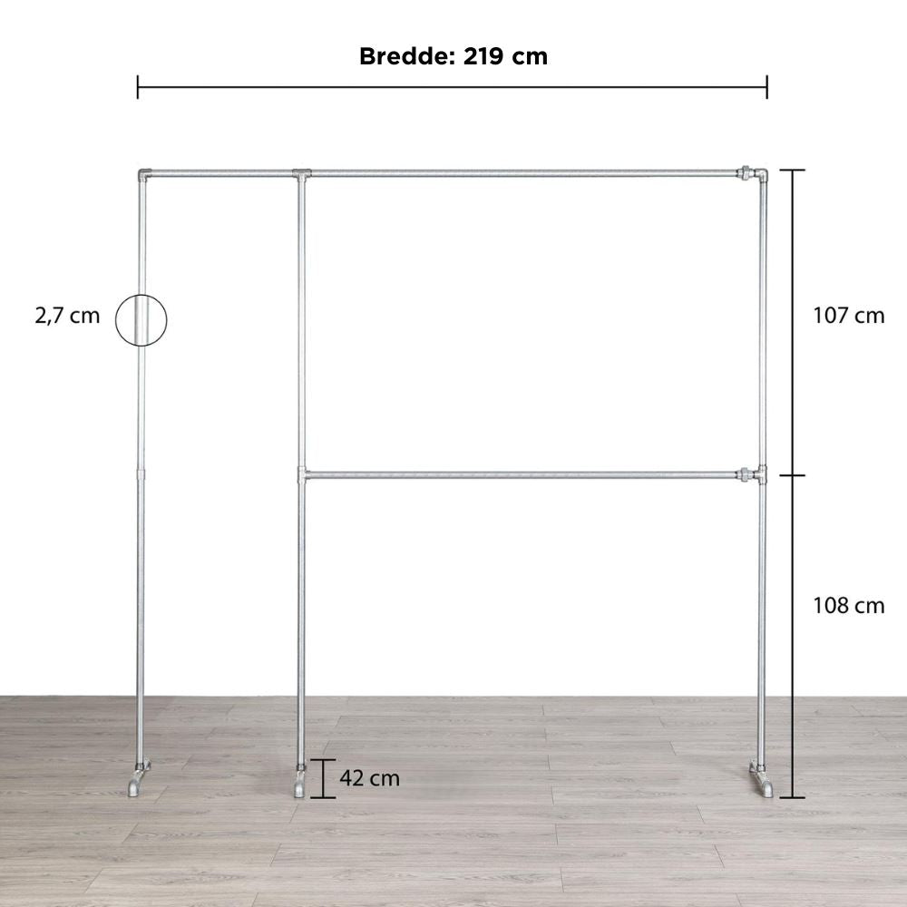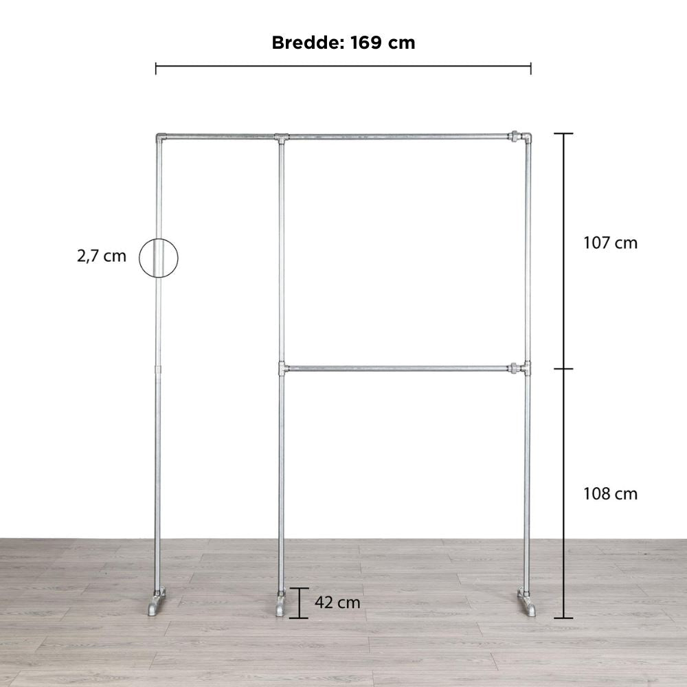 Tøjstativ ALMA er bygget til at vare hele livet. Fremstillet af stål/vandrør, er det utrolig stærkt, hvilket gør det ideelt til brug i både boliger og erhvervsmæssige miljøer. Dette tøjstativ vil forblive en pålidelig del af din tøjopbevaring i årevis. Og skulle du senere ønske at lave om på tøjstativet, så kan du bestille delene til dette hos os.