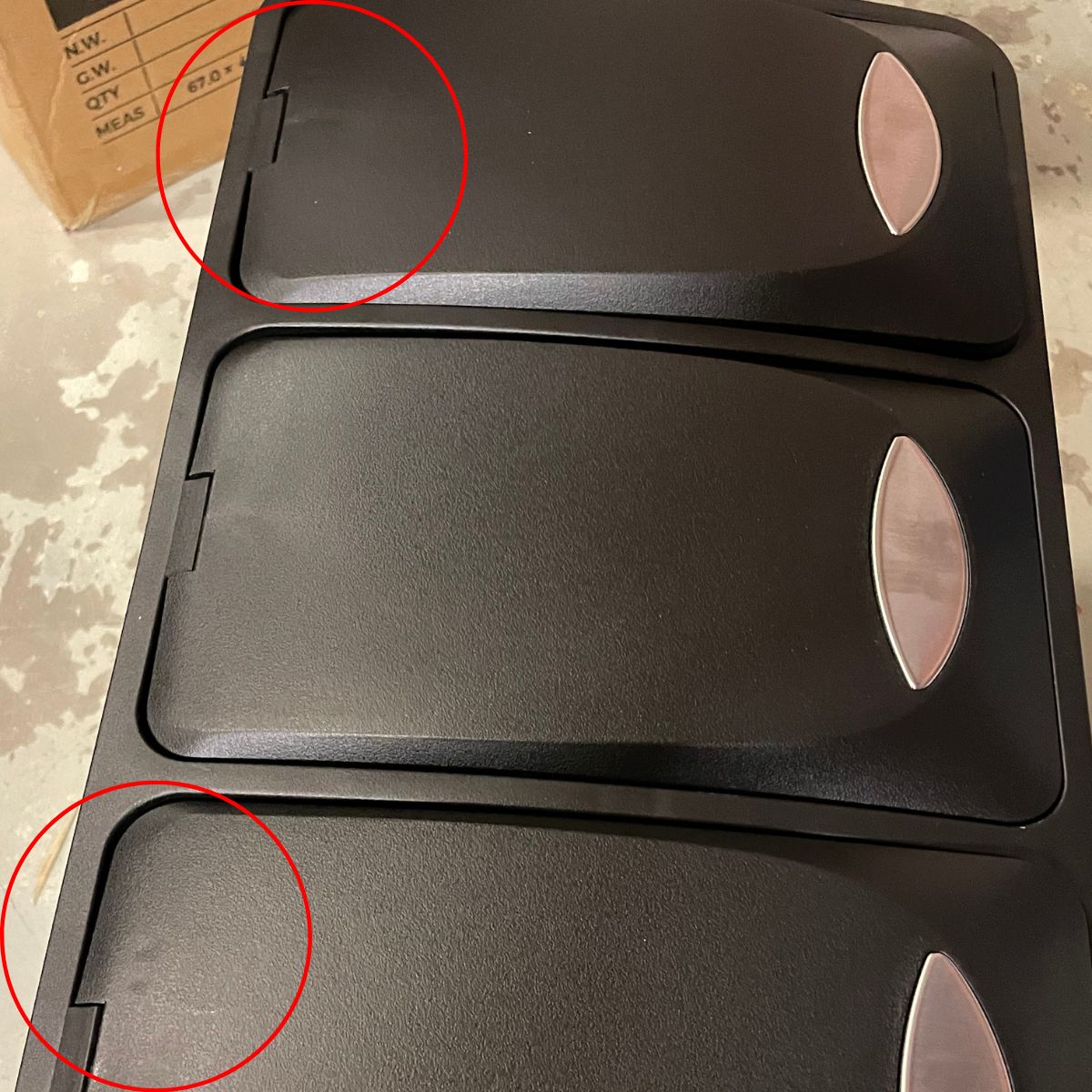 Gennemtænkt design - Det tætsluttende låg holder lugte inde og ser også stilfuldt ud. Det skridsikre plaststativ vil ikke lave mærker på gulve, hvilket gør den velegnet til ethvert område indendørs eller udendørs. Der er også indbygget et praktisk bærehåndtag for ekstra bekvemmelighed.