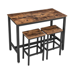 Et sæt til krævende mennesker: Nyd en luksuriøs morgenmad med venner i dit eget hjem. Dette sæt med barbord og to barstole er en praktisk måde at underholde på - ideelt til køkkener, spillerum eller stuer. Det sorte stålstel og den rustikke brune finish tilføjer et elegant touch til ethvert rum.