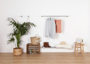 Sara er et smart tøjstativ der kan bruges i alle boligens rum, og det er også populært i butikker. Tøjstativet tager minimal plads, og giver dig mere gulvplads. Tøjstativet er populært blandt vores kunder fordi det kan bruges på skråvægge, så man får udnyttet alle vægge til fulde. Flere af vores kunder hænger også tøjstativet i loftet.