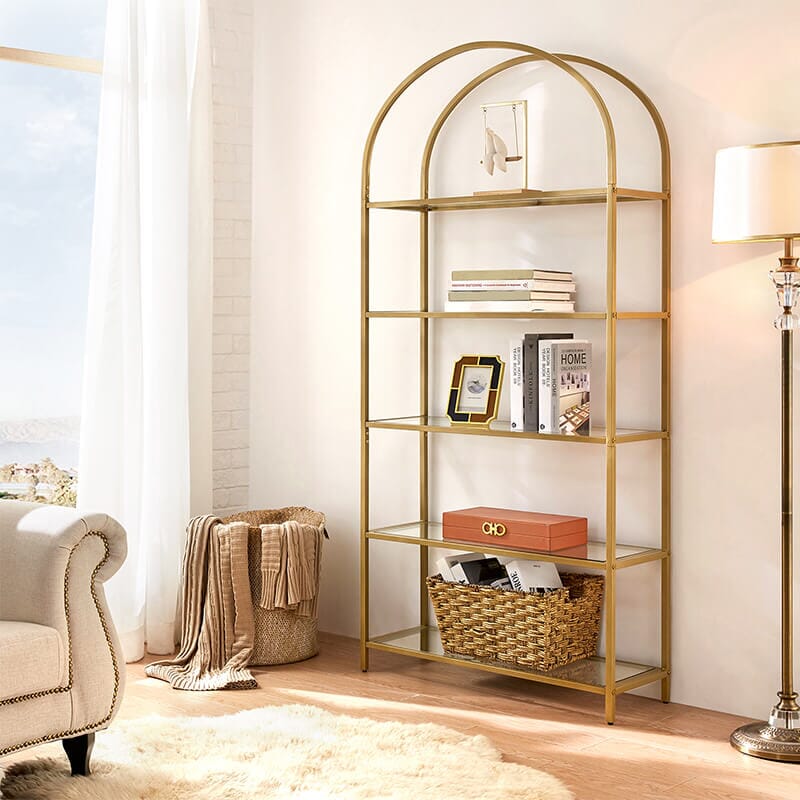 Praktisk brug - Fem hylder med 31,2 cm afstand mellem hvert hyldegiver masser af plads til bøger, dekorationer og planter. Skab en lys og lys indretning i din stue eller dit soveværelse, der ser fantastisk ud!