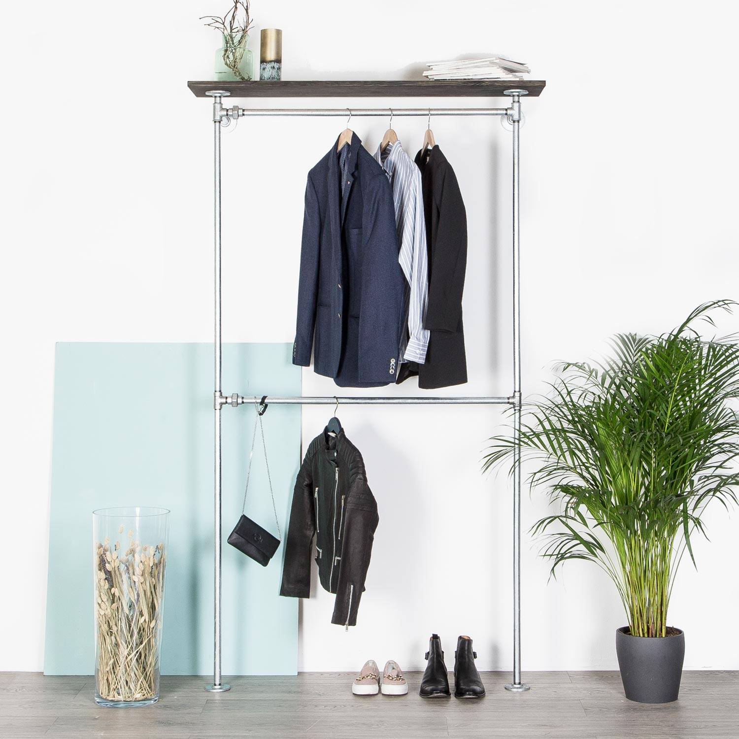 Vores tøjstativ er fremstillet af robuste vandrør, der ikke kun giver en industriel æstetik, men også sikrer, at det kan bære over 100 kilo tøj uden besvær. Dette gør det til den ideelle opbevaringsløsning for selv den mest tøjglade familie.