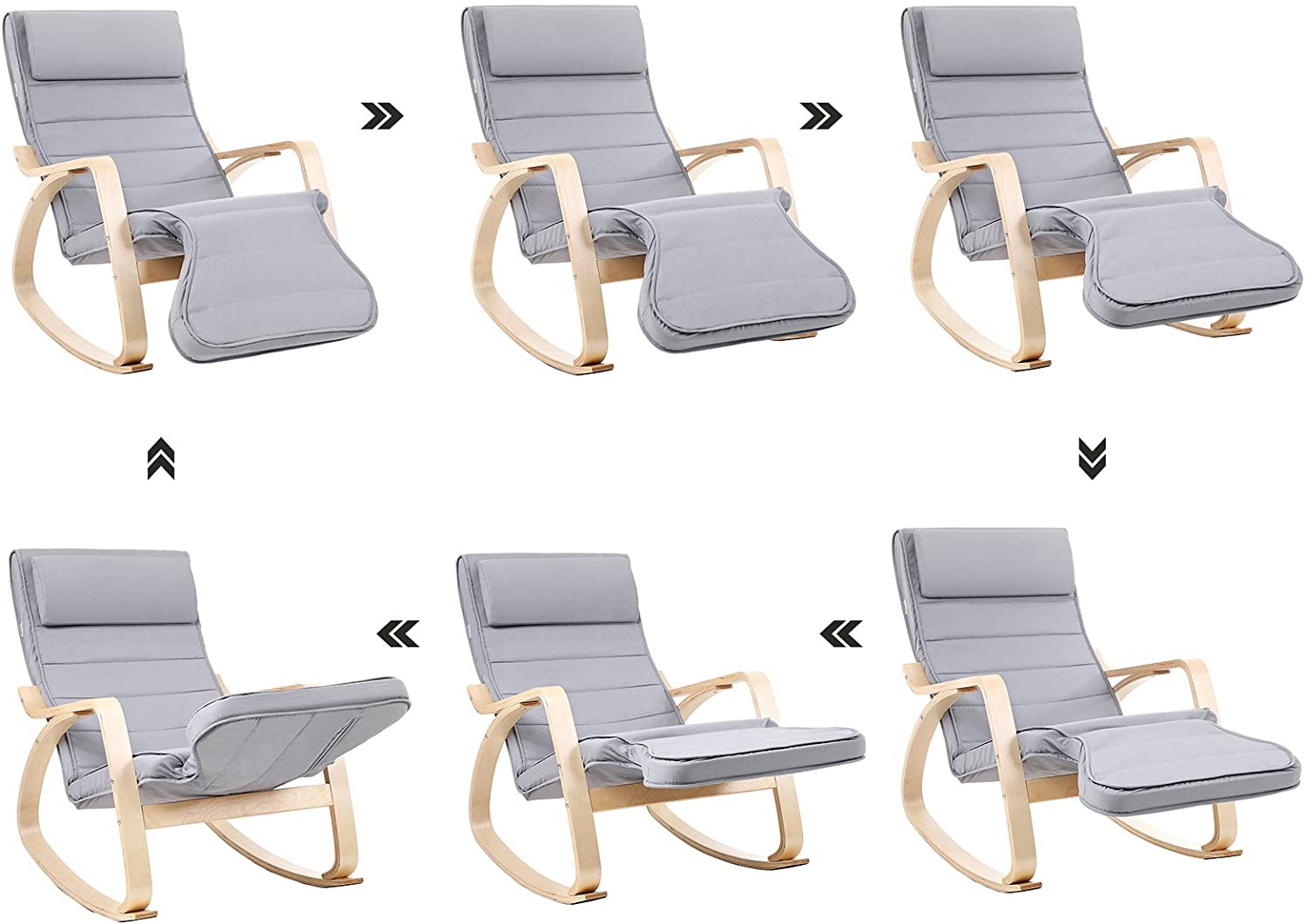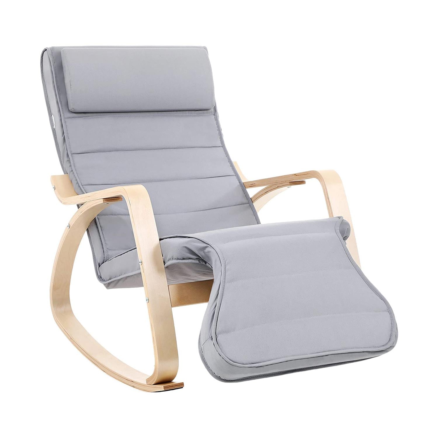 Gør det lettere at sidde og rejse sig: Diane gyngestolens fodstøtte har 5 justerbare positioner, indadbuet for maksimal komfort. Nyd den blide gyngende bevægelse for afslapning og forbedret cirkulation. Støtter op til 150 kg vægt med sin rammekonstruktion af jern og birk.