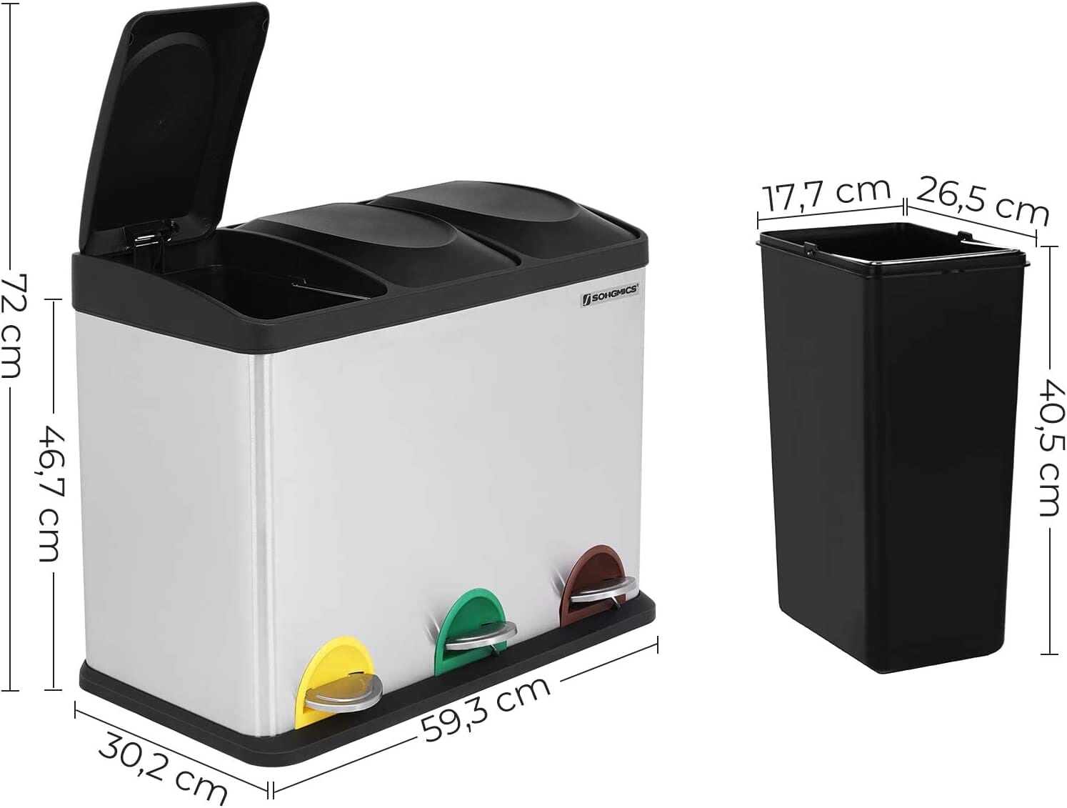HVAD DU FÅR: Få fingrene i vores 45 liter 3-rums skraldespand med praktiske pedaler og aftagelige inderspande. Affaldsbortskaffelse og sortering bliver en leg for børn!