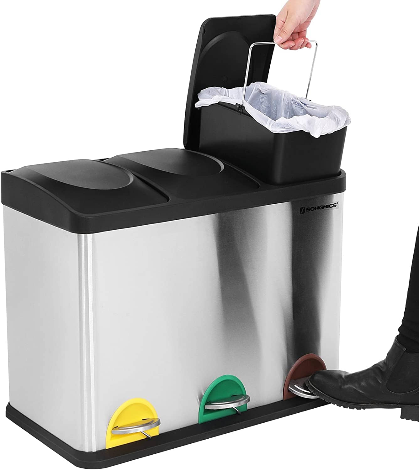 GJORT I ÉT TRIN: Med vores pedalspand kan du nemt åbne den med ét trin og udstyre den med 3 indvendige beholdere til separat bortskaffelse af affald efter materiale. Dens store kapacitet på 45 liter gør den til en sand velsignelse for dit køkken!