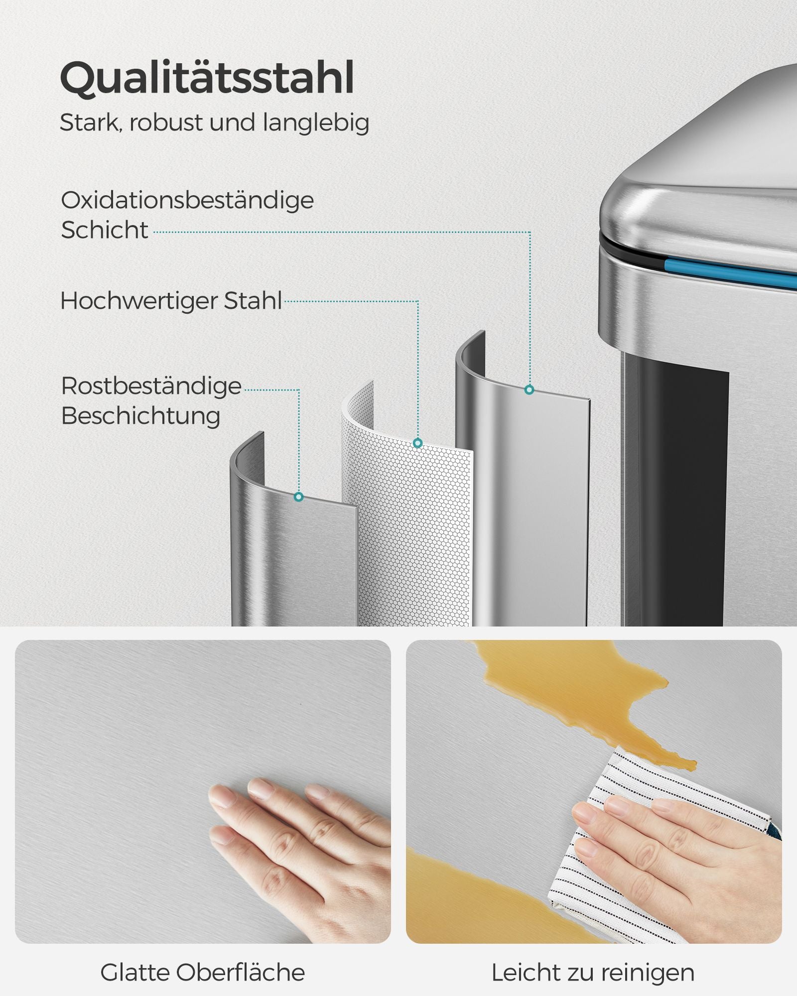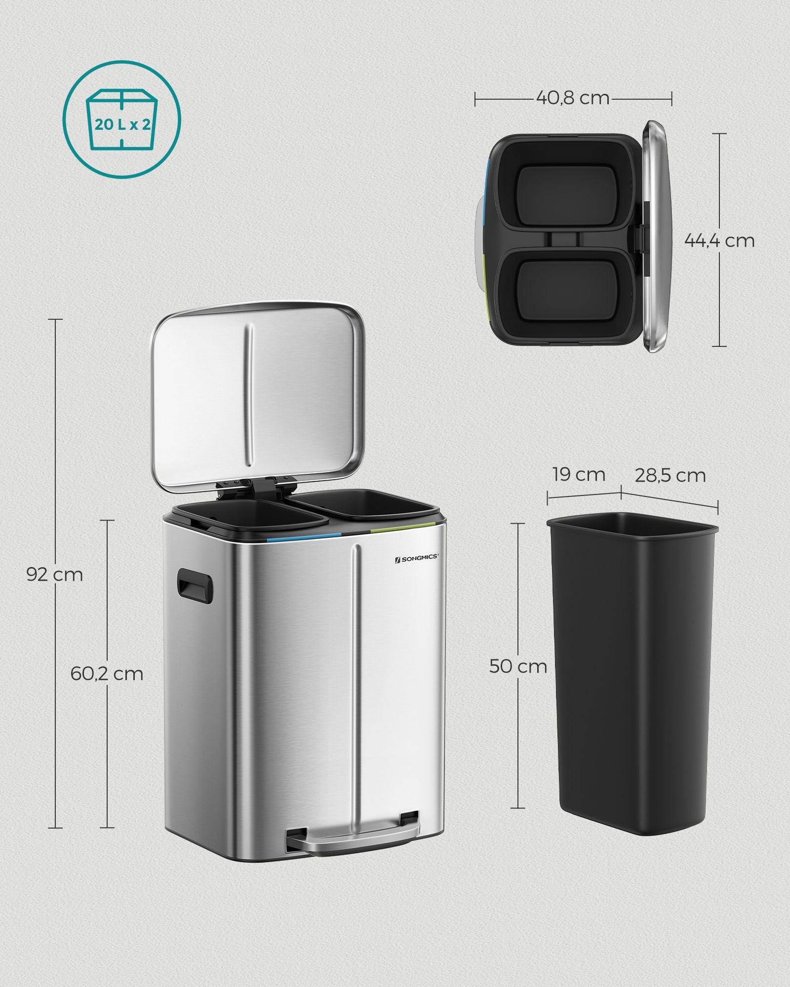 Med denne affaldsspand får du en rummelig 40L kapacitet, en aftagelig plastinderspand, et hængslet låg og et solidt pedallågsdesign, der gør affaldshåndtering nem og bekvem. Denne spand kombinerer stor funktionalitet med et elegant design, perfekt til ethvert moderne køkken.