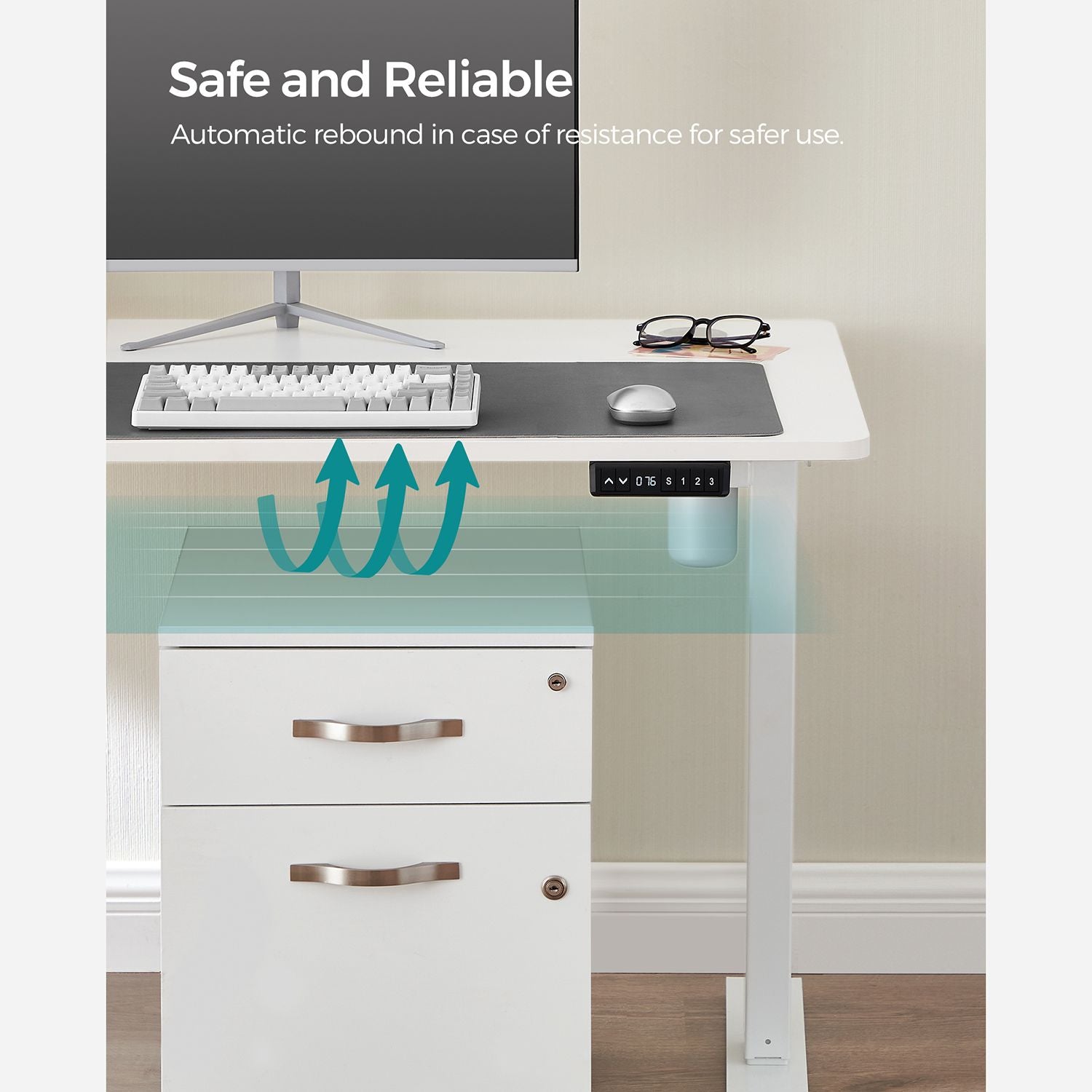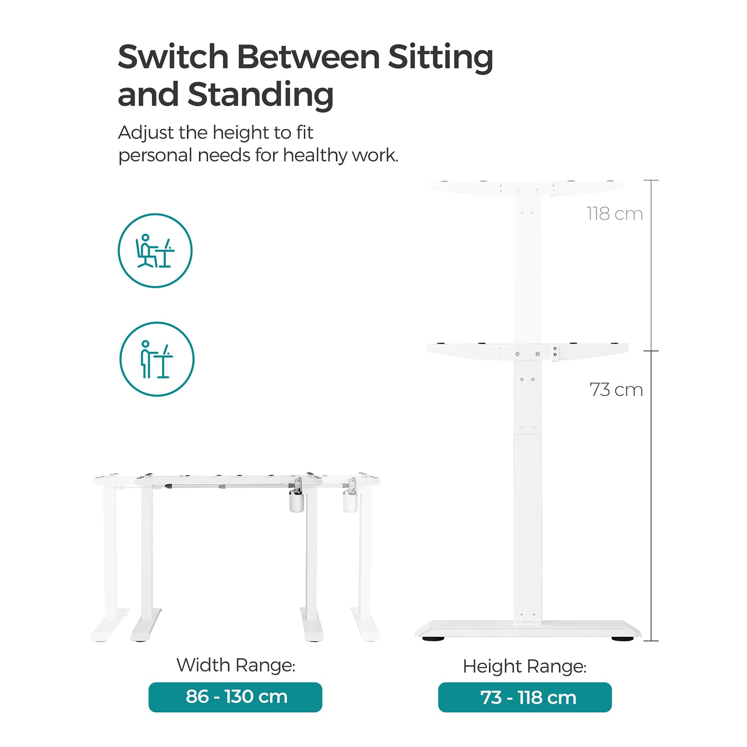 Dette skrivebord er ideelt til alle, da det kan justeres i højden fra 73 cm til 118 cm. Uanset om du er 1,1 m eller 1,95 m høj, kan du finde den perfekte stilling, der giver dig mulighed for at arbejde komfortabelt, uanset om du sidder eller står. Ved at tilpasse højden kan du lindre belastningen på din krop og skabe en mere effektiv arbejdsplads, hvor du kan lære eller arbejde uden ubehag.