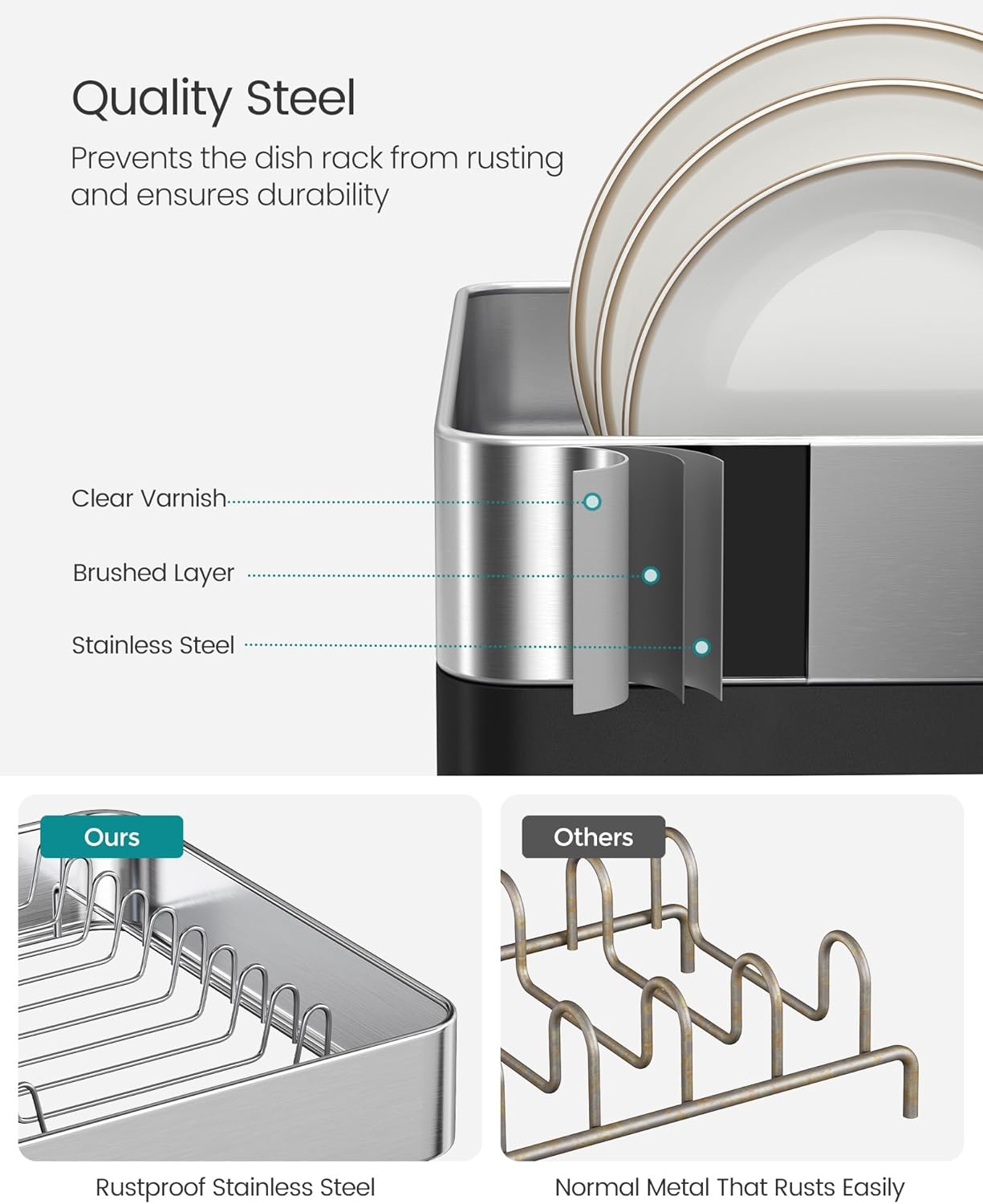 Dette opvaskestativ i rustfrit stål er både rustfrit og korrosionsbestandigt. Med en solid konstruktion kan det bære op til 22 kg og tilbyder pålidelig støtte til daglige køkkenbehov.