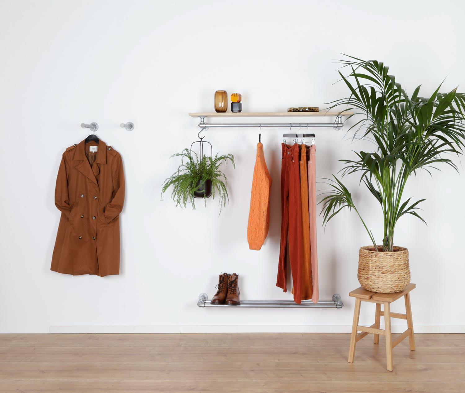 Denne smalle skoreol i vandrør er ikke kun smuk, den er også bygget til at vare i mange år. Denne bæredygtige skoreol er fremstillet af holdbare materialer, der tåler daglig brug i mange år. Med vores væghængte skoreol i vandrør kan du tilkøbe ekstra rør og samlestykker fra os. Dette gør det nemt at tilpasse din sko opbevaring i takt med, at din skosamling vokser eller dine krav ændrer sig.